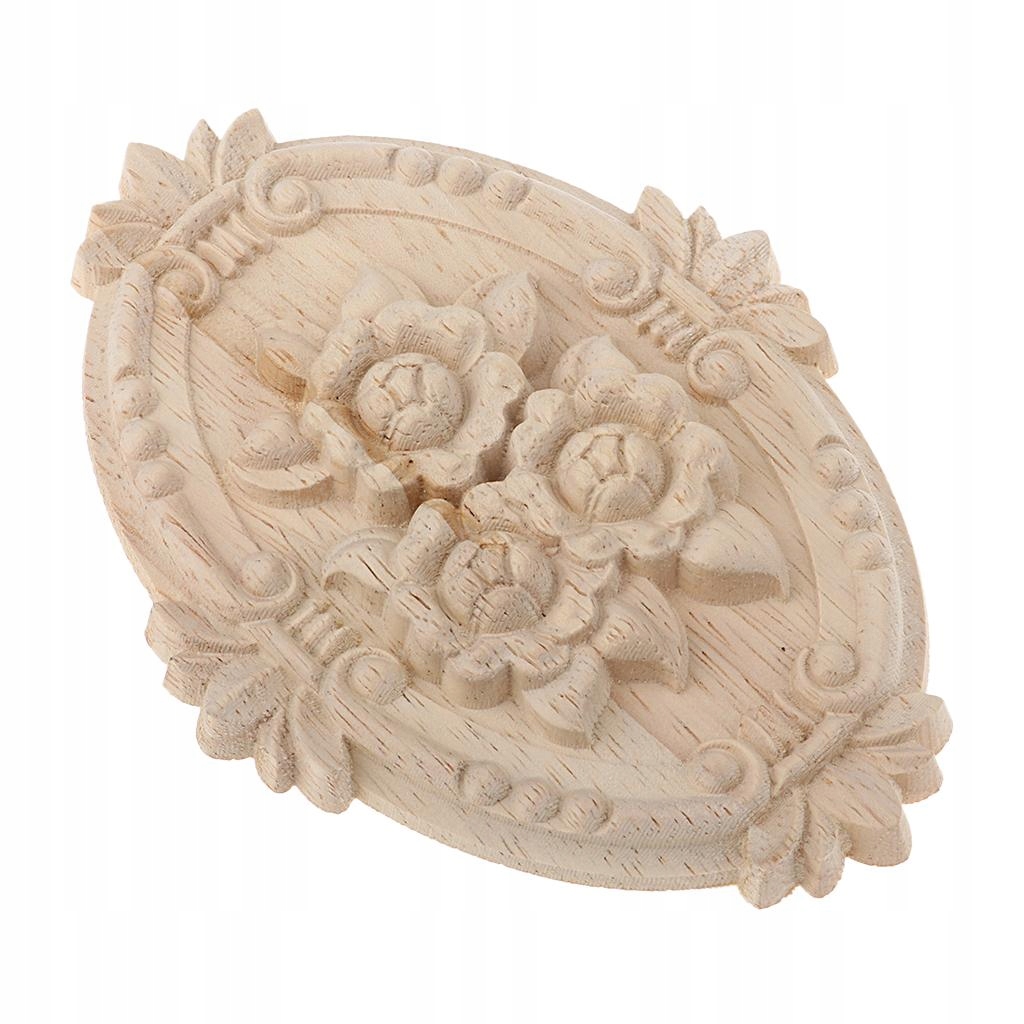 1 овальна нефарбована овальна різьблення в дерев’яному накладці Меблі 13х9см