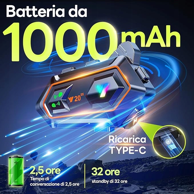 ✅Завдяки вбудованій батареї ємністю 1000 мАг мотоциклетний домофон V202X може безперервно працювати протягом 32 годин на одному повному заряді, тому він підходить для різних шоломів