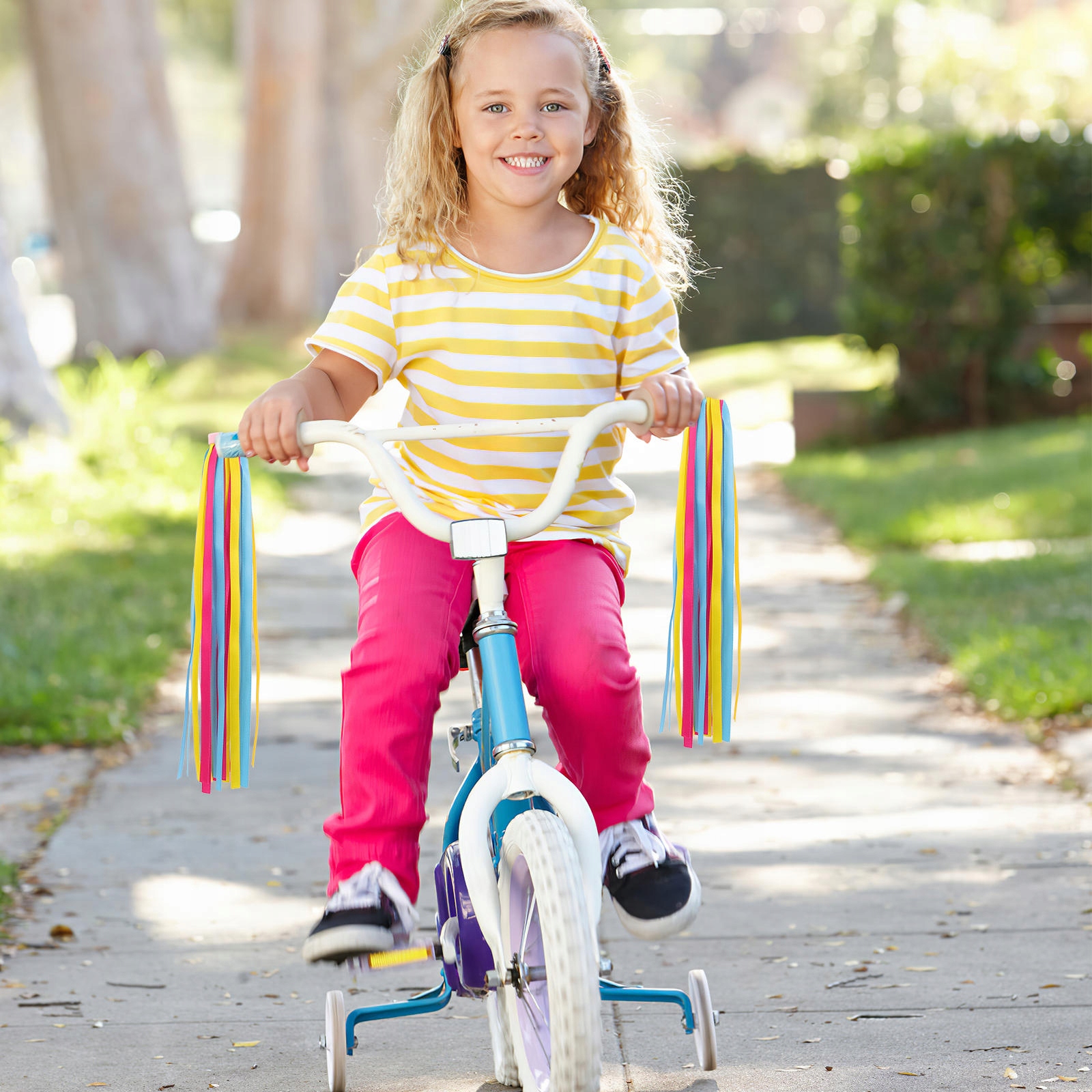 ✅ Стрімери підходять для більшості велосипедних ручок, легко вставляються в кермо велосипедів, трициклів і скутерів. Він виготовлений з високоякісного поліефірного матеріалу, міцного, який не легко вицвітає. Стрічки з китицями є чудовою прикрасою для дитячих велосипедів, додаючи веселості та краси.