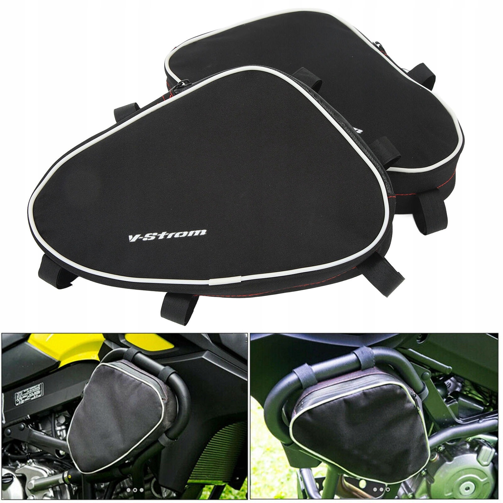 1. Розміщення: аварійна сумка на бамперній рамі є заміною для Suzuki V-Strom DL1000, будь ласка, перевірте модель свого мотоцикла перед замовленням.