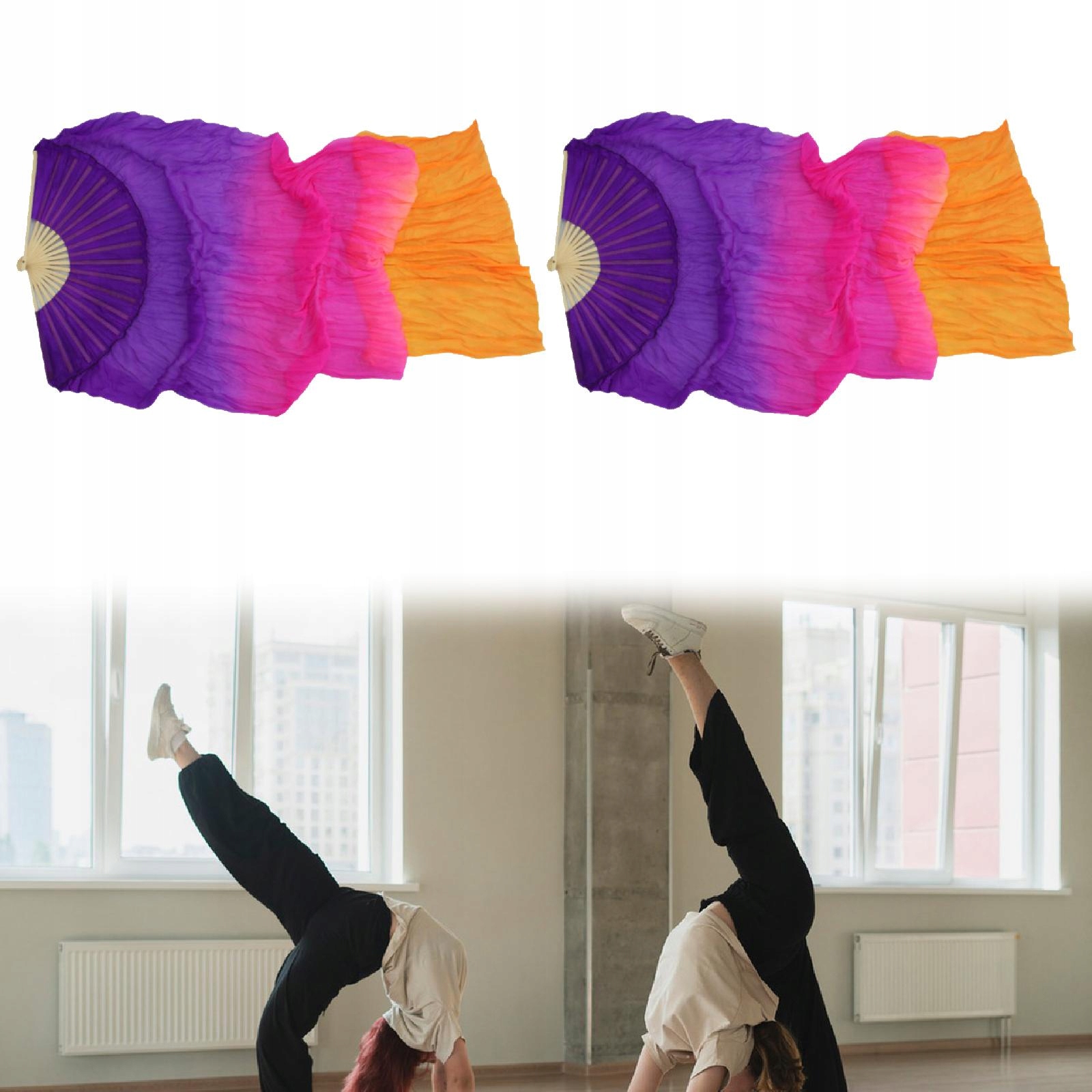 [Відмінна продуктивність]: Жіноча 1 пара шовкових вуалів ручної роботи для черевних танців, що танцюють довгі розкладні шанувальники для танців у прекрасних, ручних кольорах, гнучких, легких у складанні та розгортання, повітряних та яскравих.