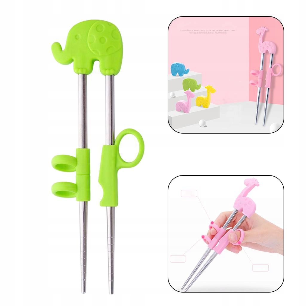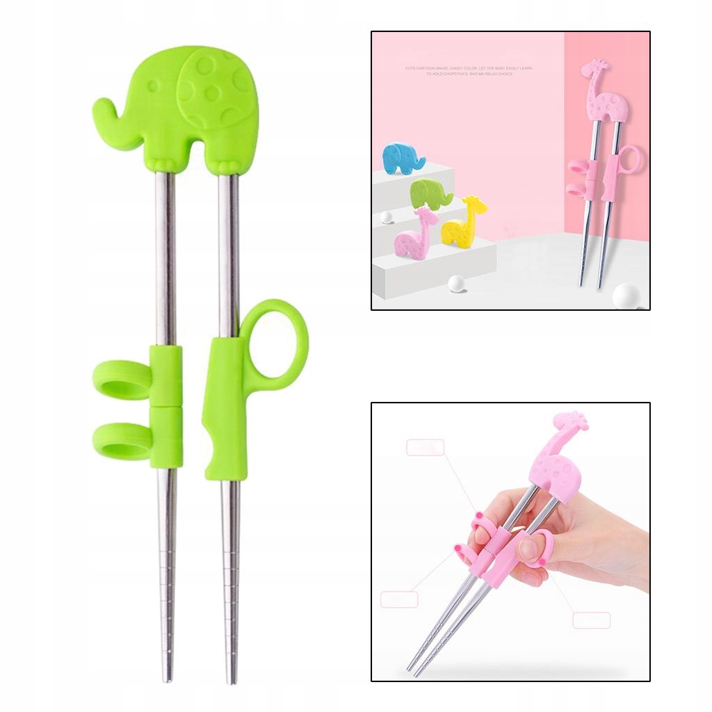 1 пара паличок у новому стилі для дітей у віці 2 років, для дітей, для немовлят, зеленого слона