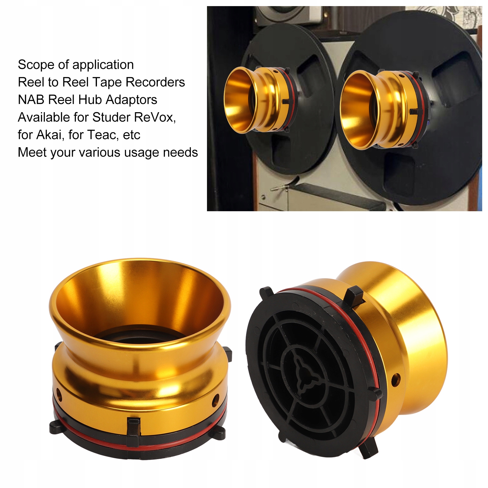 1. Сумісність: котушкові магнітофони Перехідники NAB для котушних магнітофонів можна використовувати для Studer ReVox, Akai, Teac тощо, щоб задовольнити різні потреби використання.