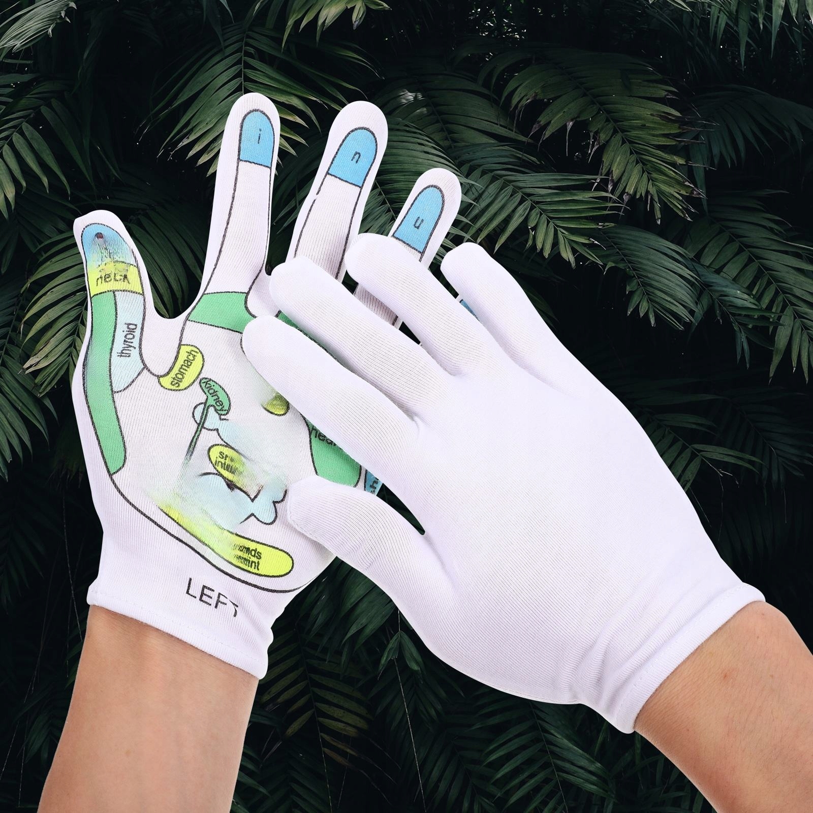 1 ПАРА РУКАВИЦЬ ДЛЯ ПРОФЕСІЙНОГО ТОЧКОВОГО МАСАЖУ (АКУПРЕСУРИ), БІЛИХ