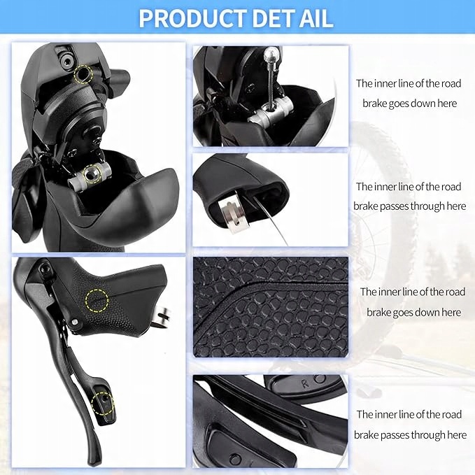 - Матеріал преміум -класу : дуже міцна ручка алюмінієвого сплаву, захисна кришка, що не має слизу, регулятор корпусу ABS та захисне кільце з нержавіючої сталі, зміцнюються, що досить сильне. Важіль гальма має хороший метод різьблення зсуву передач і гальмівного кабелю