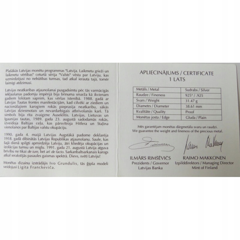 1 рік, Латвія - Відродження латвійської держави, 2007, срібло