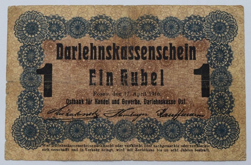 1 РУБЛЬ 1916 ПОЗНАНЬ