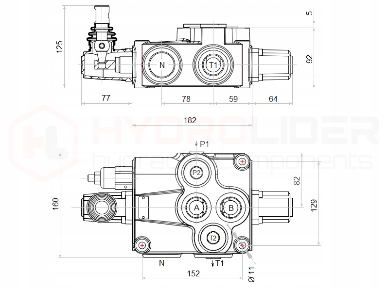 1-СЕКЦІЙНИЙ ГІДРАВЛІЧНИЙ РОЗПОДІЛЬНИК P160