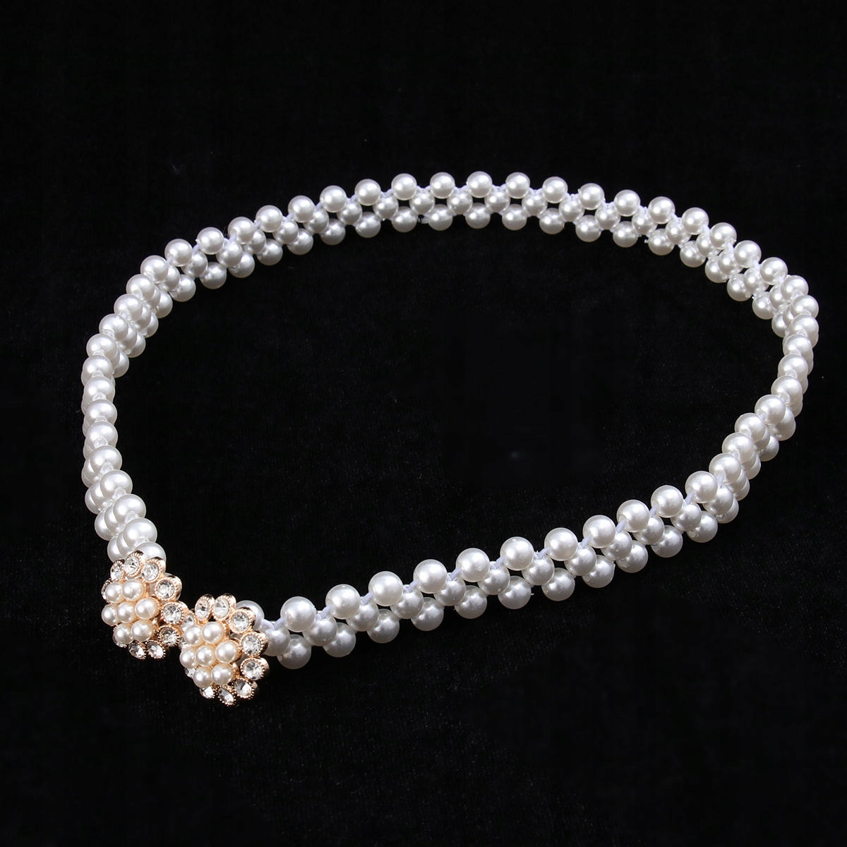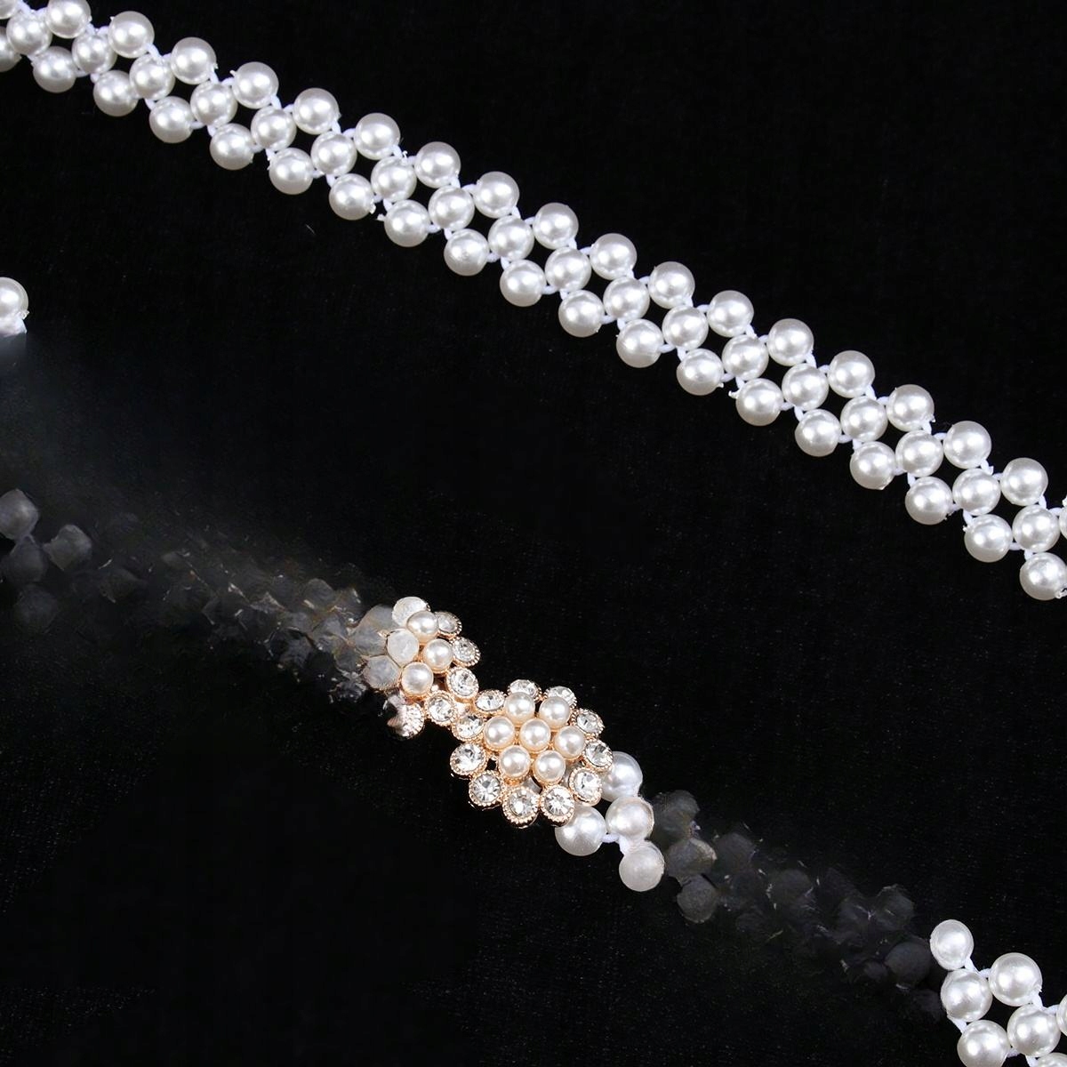 1 шт. ЕЛАСТИЧНИЙ БІЛИЙ ЖІНОЧИЙ ПОЯС З ДЕКОРАТИВНИМИ ПЕРЛАМИ
