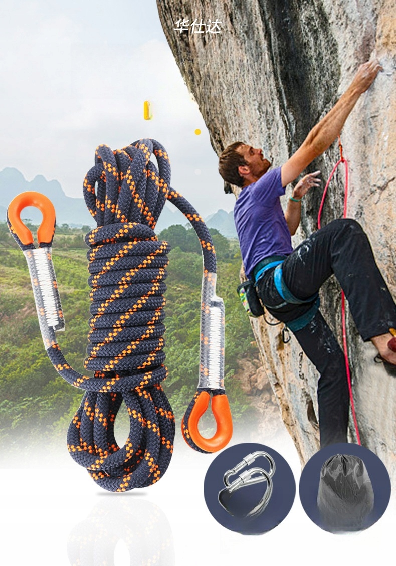 ✅Ця армована нейлонова мотузка міцна та міцна. Він характеризується високою стійкістю до стирання і довговічний. Він може забезпечити безпечне та надійне середовище завдяки міцному матеріалу та конструкції. Ця мотузка призначена для альпінізму, скелелазіння та інших видів активного відпочинку.