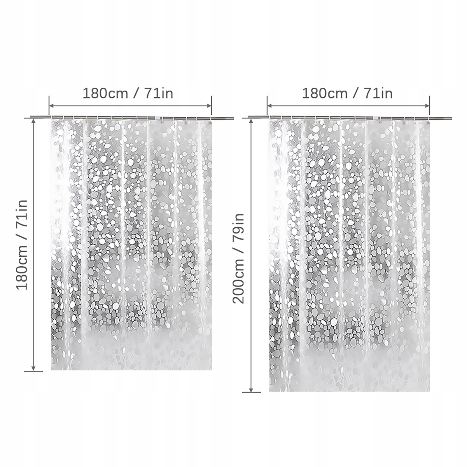 2. Ця шторка для душу доступна в 2 розмірах і підходить для всіх розмірів душових кабін або ванн, незалежно від типу душу.