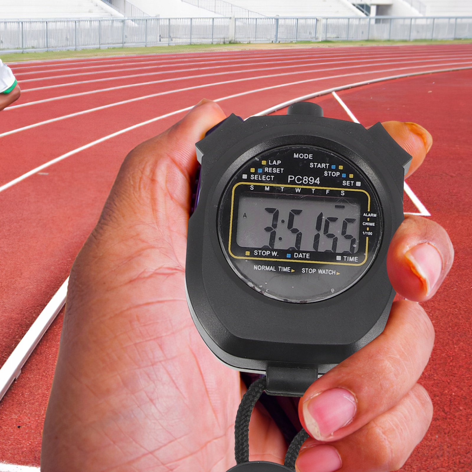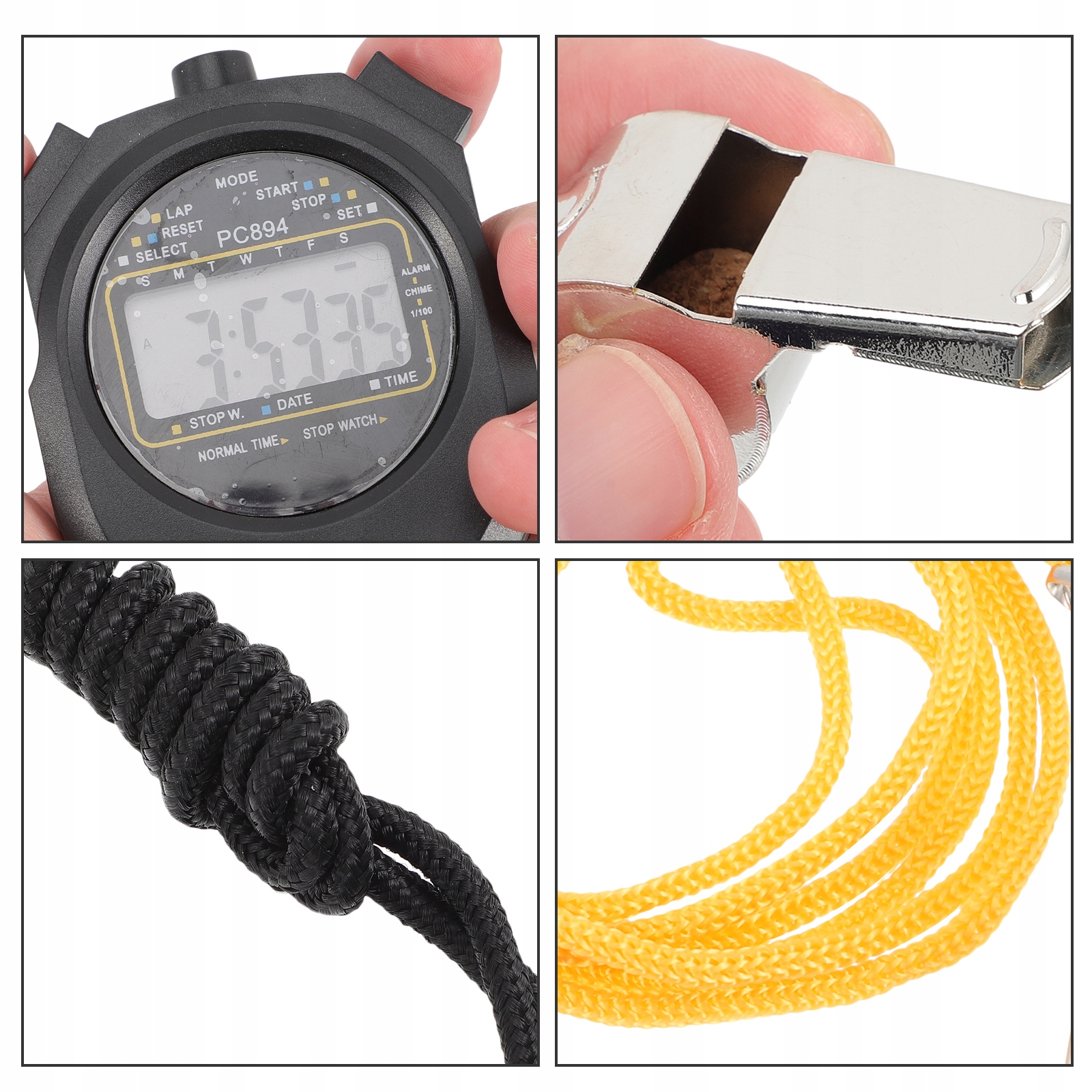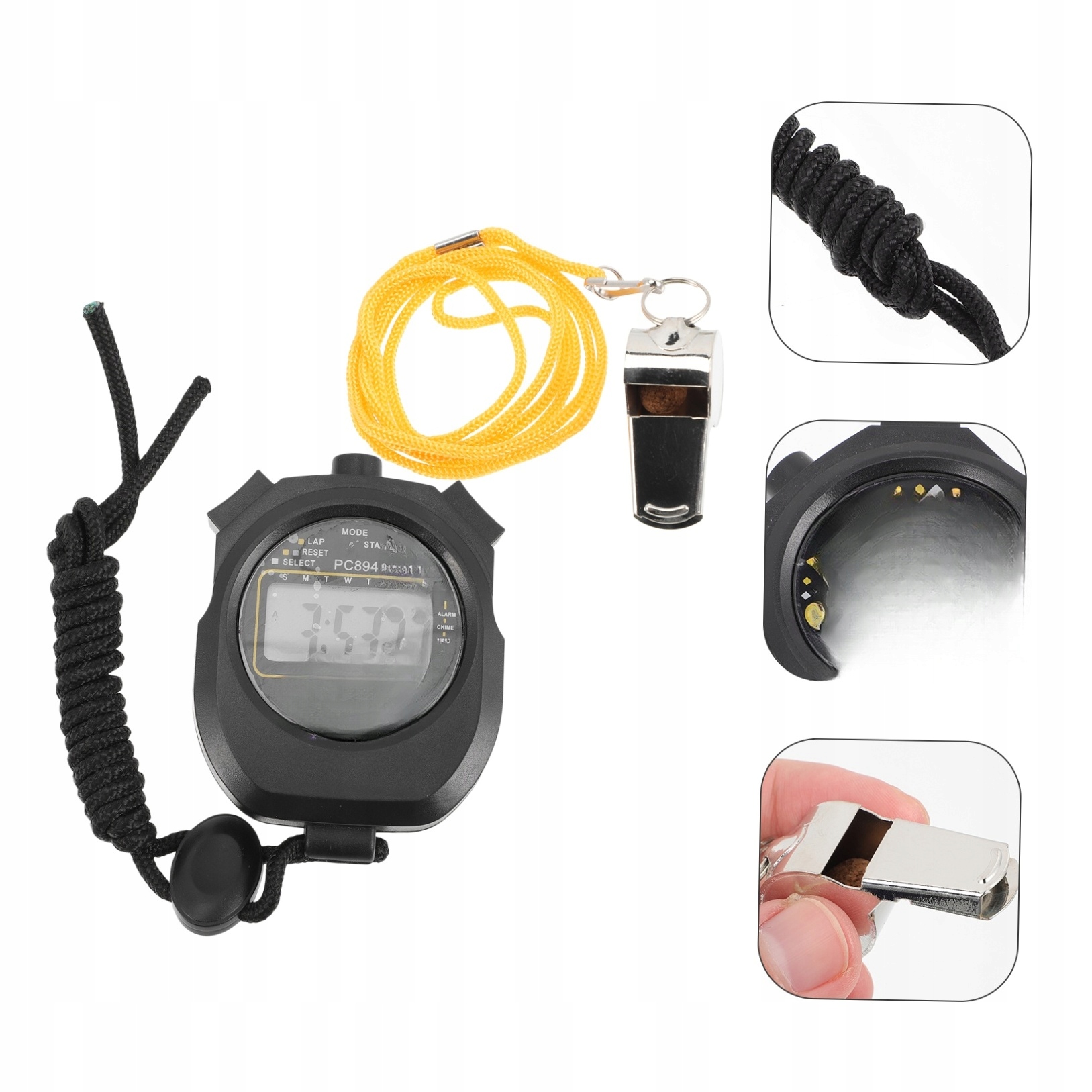 Додатковою, дуже важливою перевагою є шнурок, завдяки якому секундомір можна обернути. руку, щоб бути впевненим, що він не впаде, або повісьте його на шию, щоб завжди мати його з собою.