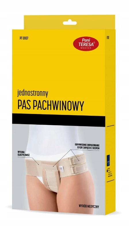 Пояс для пахової грижі односторонній Mrs. Teresa Medica PT 0107 — медичний пристрій багаторазового використання. Ідеально підходить для підтримки процесу лікування та реабілітації при неможливості операції з приводу невеликої пахової грижі, а також як профілактика рецидивів при слабкості опорно-рухового апарату. Він простий по конструкції, має дуже зручну застібку, а ремінь не рухається під час носіння. Легко миється. Пояс перешкоджає виходу внутрішніх органів за межі кільця пахового каналу.