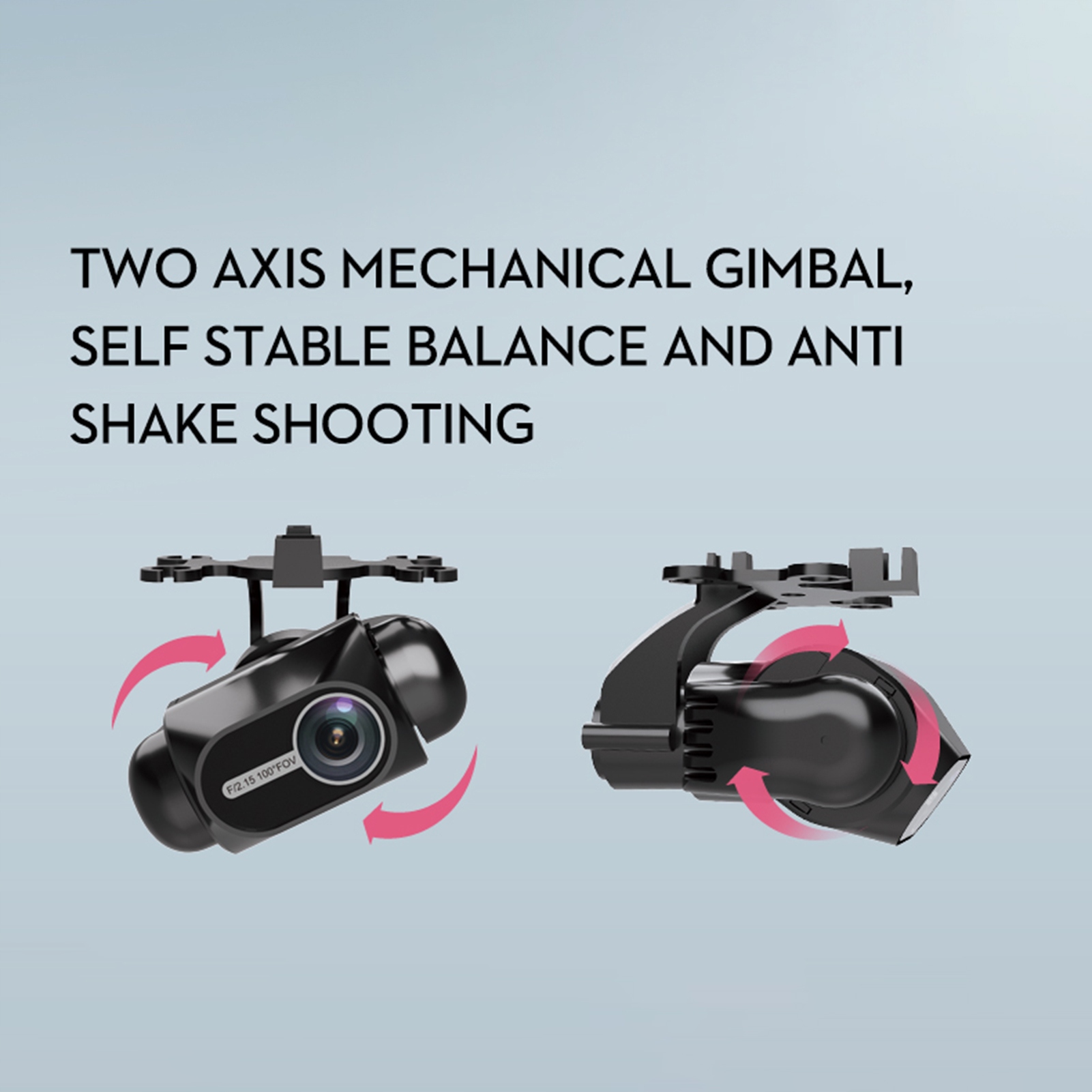 об'єктив та камера Botttom 1080p з регулюванням потоку світла. Двоассисна механічна гімбал забезпечує стабільність, тоді як електронна технологія протипливів EIS гарантує чіткі та стійкі фотографії.