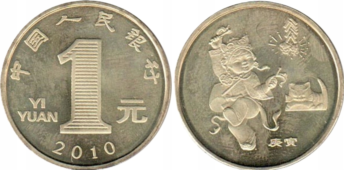 1 юань (2010) Китай - рік Тигра, китайський знак зодіаку