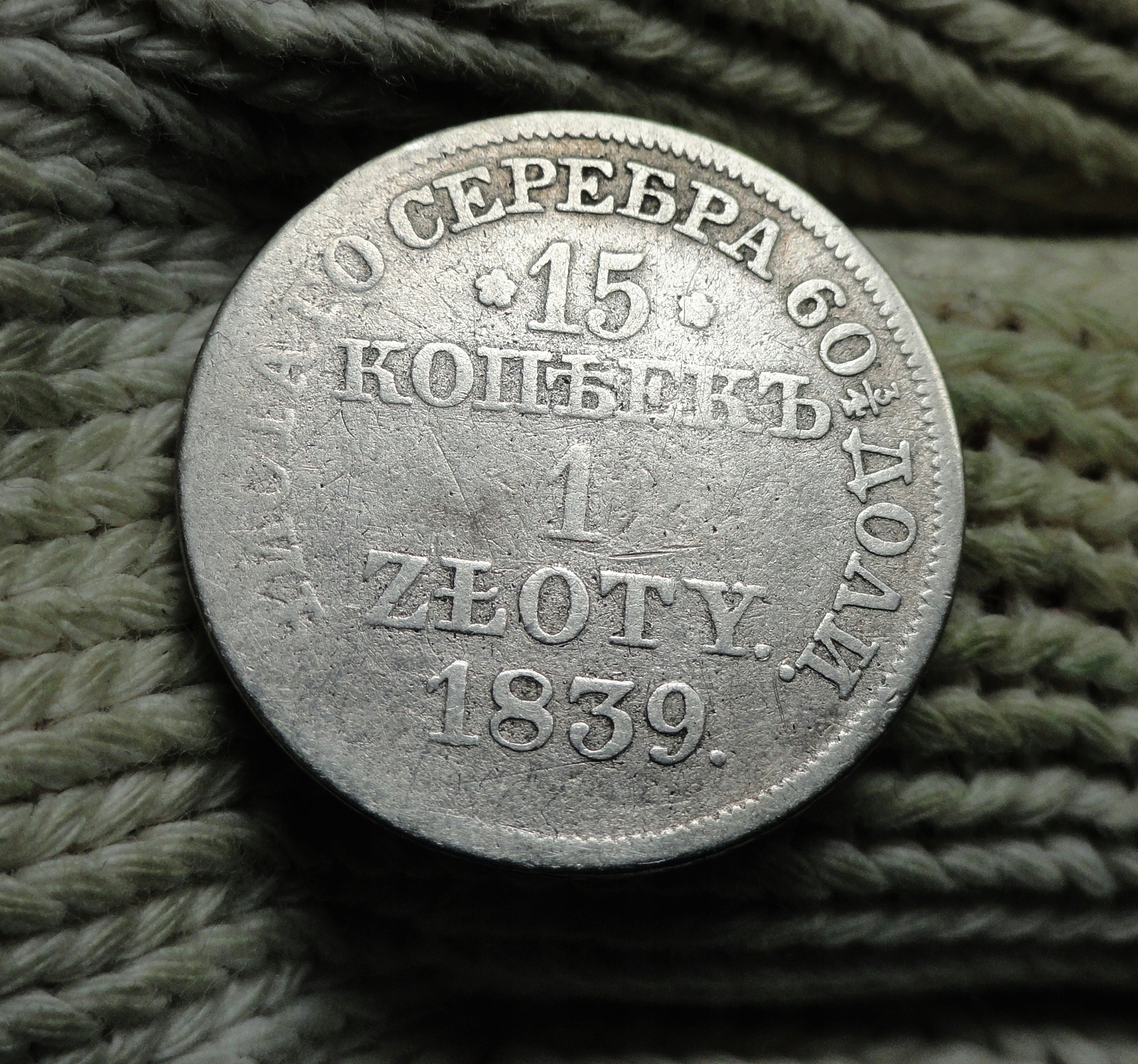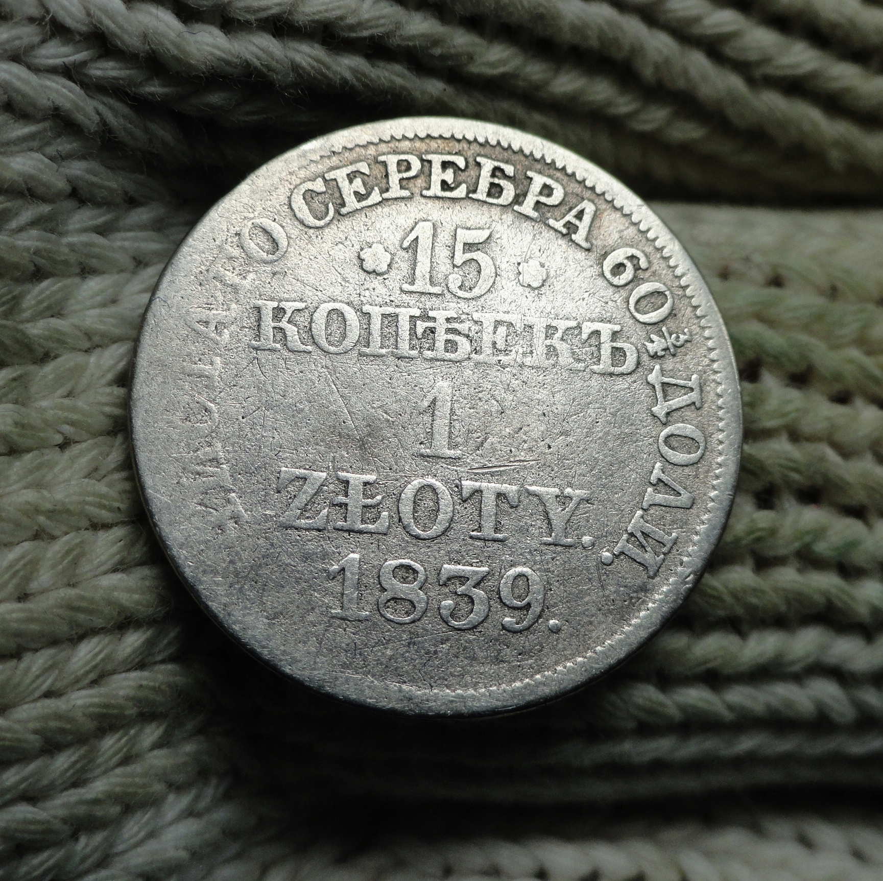 1 ЗЛОТИЙ / 15 КОПІЙОК З 1839 РОКУ ОРИГІНАЛ