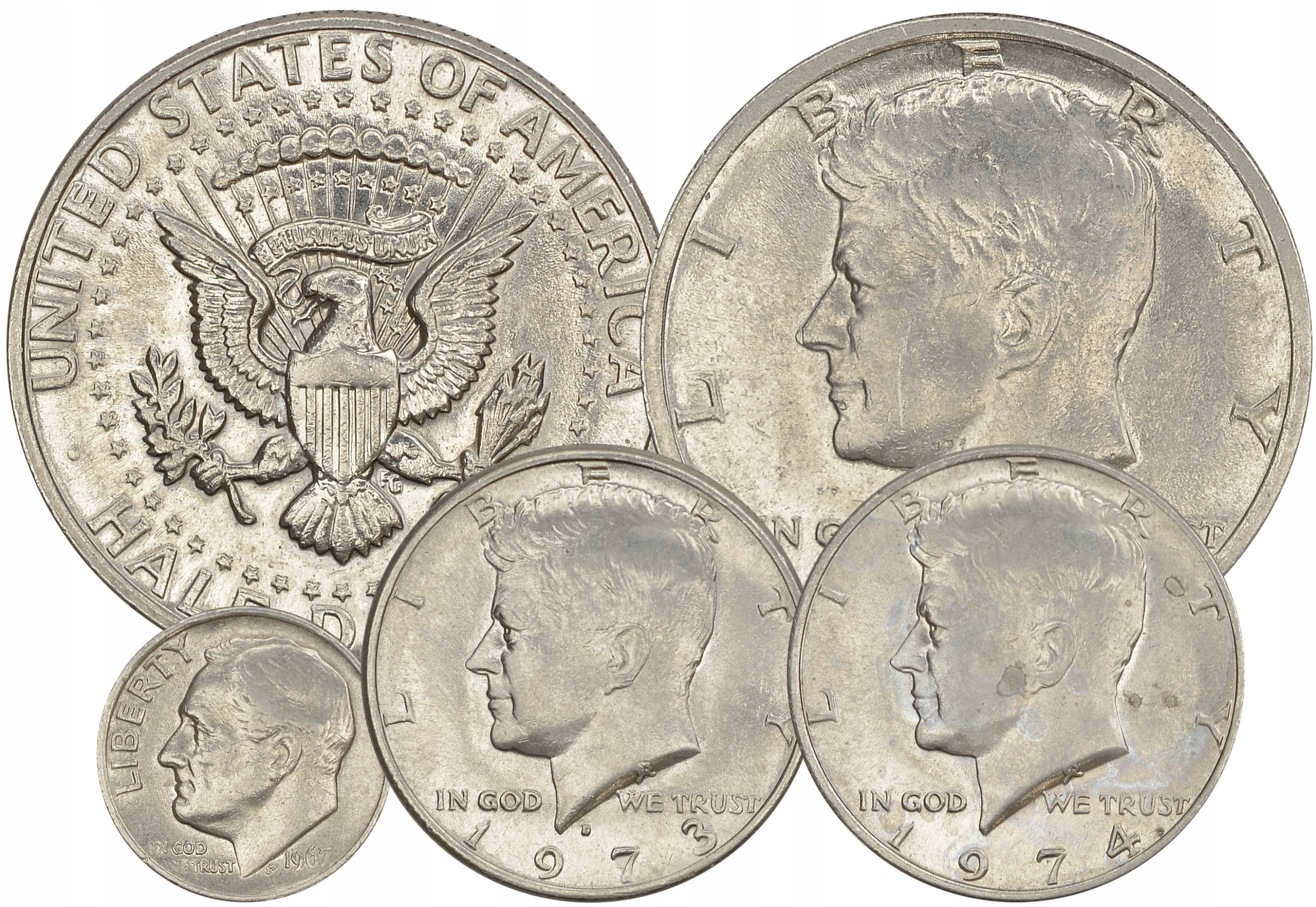 - Опис: набір включає монети з такими номіналами: 10 центів 1967 (st.3+), 1/2 долара 1971 D, 1973 D , 1974. Якщо ви виграєте більше аукціонів, вартість доставки буде визначено.