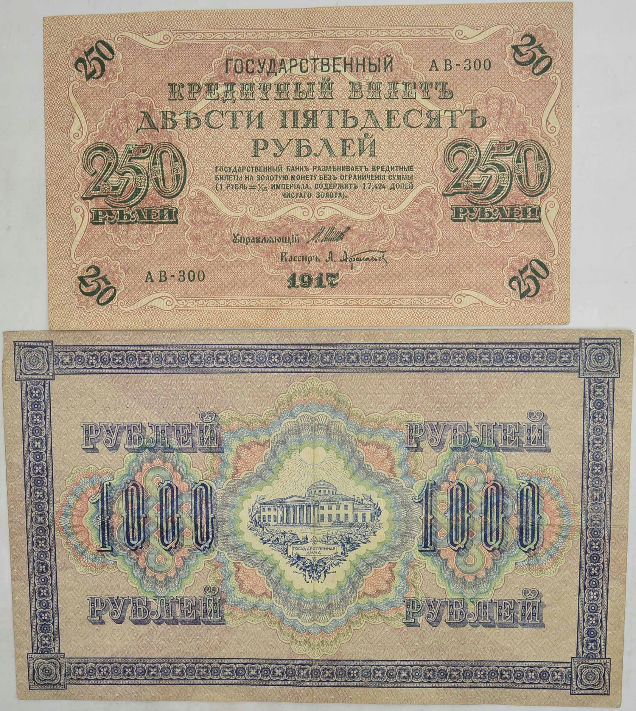 - Опис: У набір входять банкноти номіналом: 250 рублів, 1000 рублів 1917 року