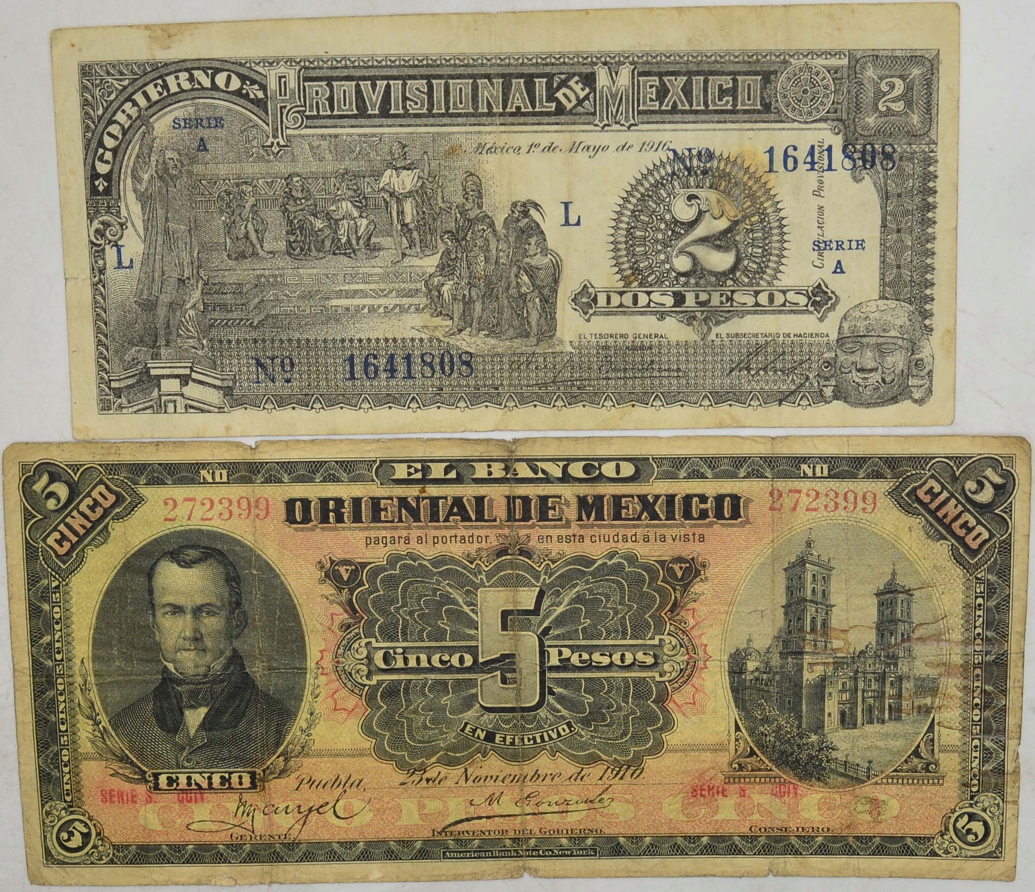 - Опис: набір містить банкноти таких номіналів: тимчасова Мексика - 2 песо 1916 (St.3+), Oriental De Mexico - 5 песо 1910 (St.3/3+) )
