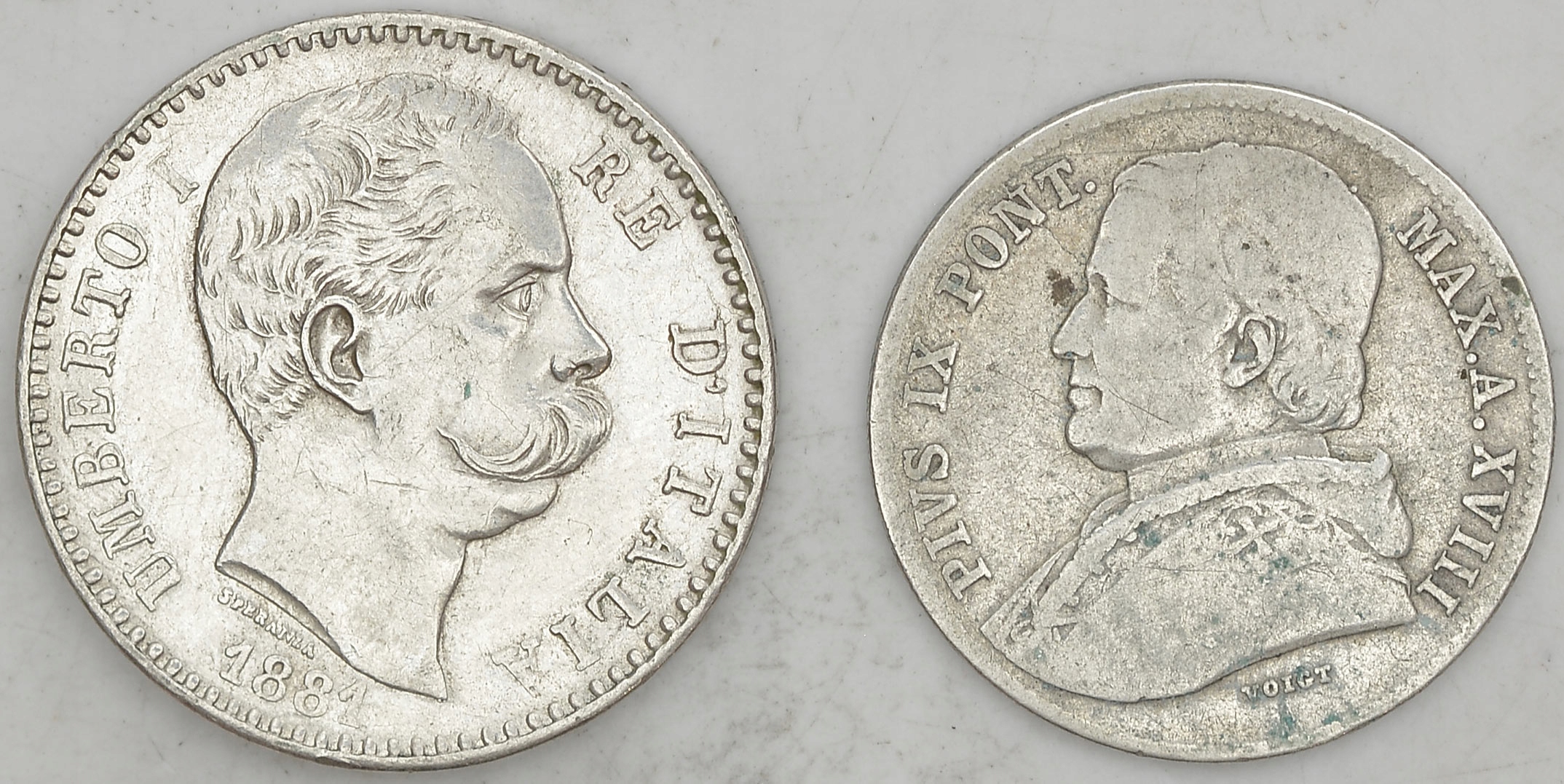 - Опис: набір містить монети: Папство, Пій IX - 20 Baiocchi 1864 / XVIII Р; Італія, Умберто I - 2 ліри 1881.