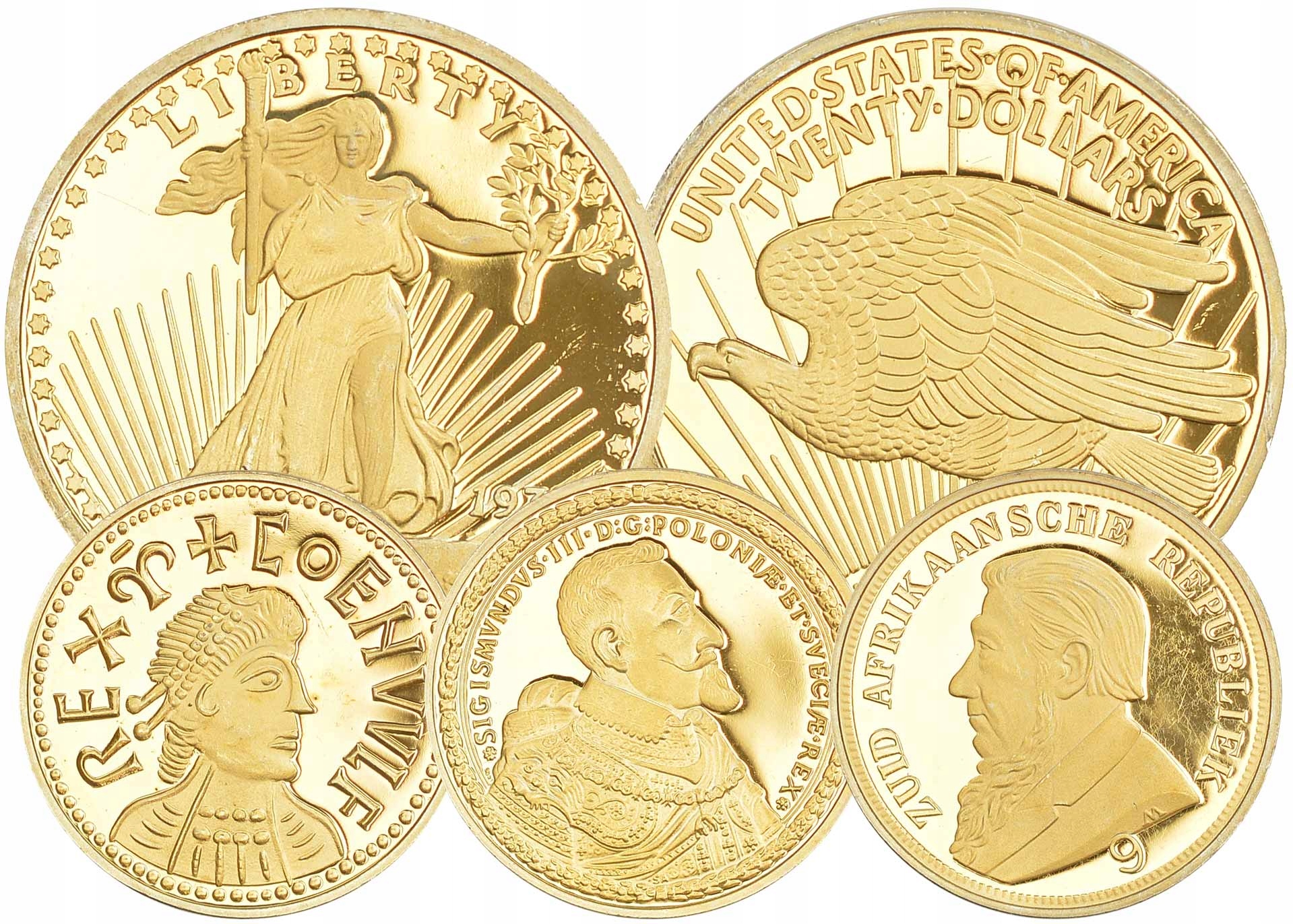- Опис: колекційні копії 4 монет із серії «Легендарні монети світу»: Англія. - Мерсія, Коенвульф - Золотий пенні 796-821; Південна Африка - 1 фунт 1898 '9'; США - 20 доларів 1933 Saint-Gaudens; Сигізмунд III Ваза - 100 дукатів 1621 р. Дзеркало. Смуги патини. Відбитки пальців і мікроподряпини. Монети без кришки. Діаметр приблизно 25 мм.
