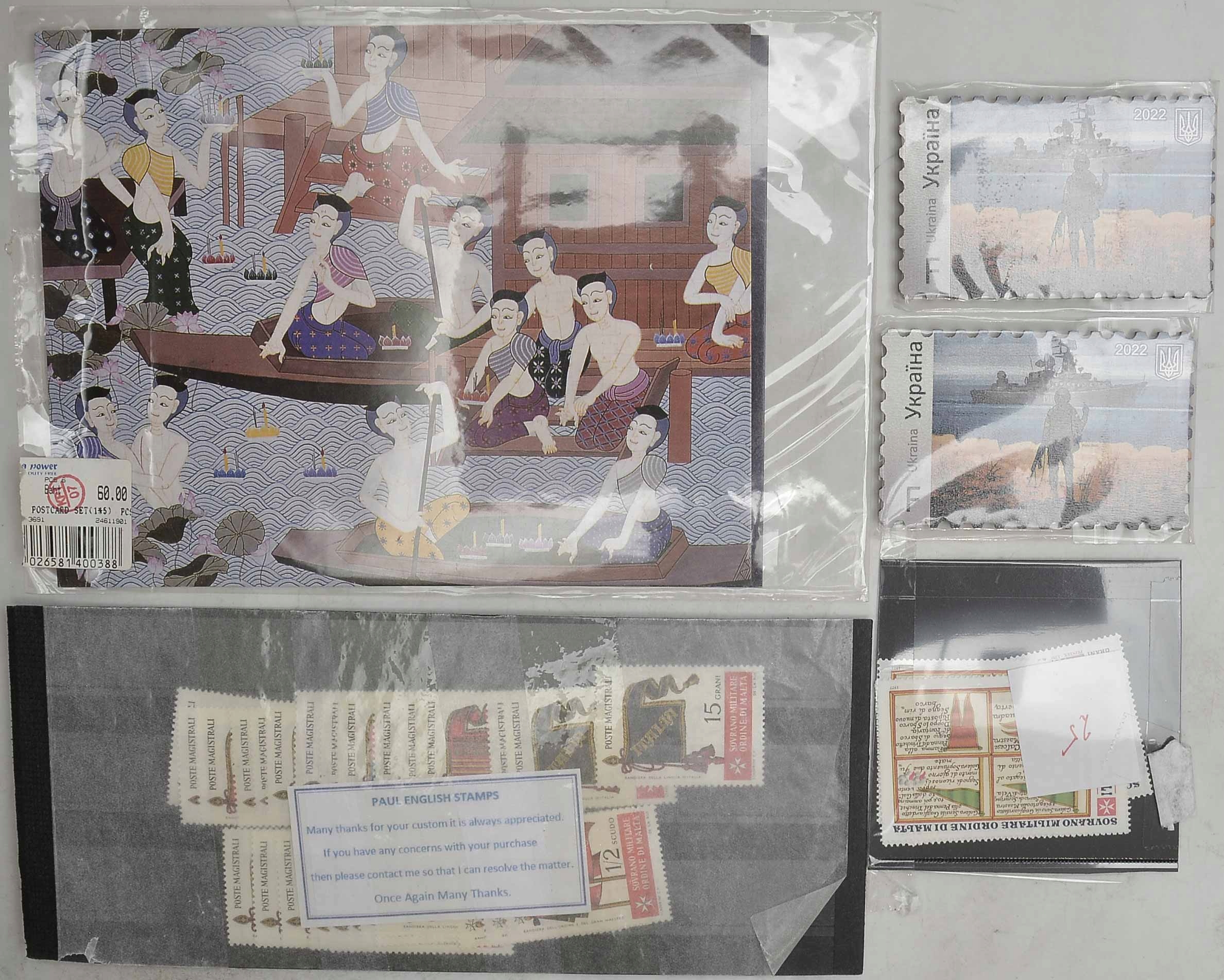 - Опис: різноманітна колекція. У набір входять марки, блоки та листівки: Україна (5 листівок, 10 блоків + 3 філателістичних магніти); Маврикій (марки - 65 шт.); Чечня (блок); Таїланд (2 поштові картки, марки - 21 шт.); ПРЛ (3 блоки, 5 марок); Мальтійський орден (бл. 28 шт.). Фотографії зроблені через фольгу. Ви отримаєте саме те, що зображено.