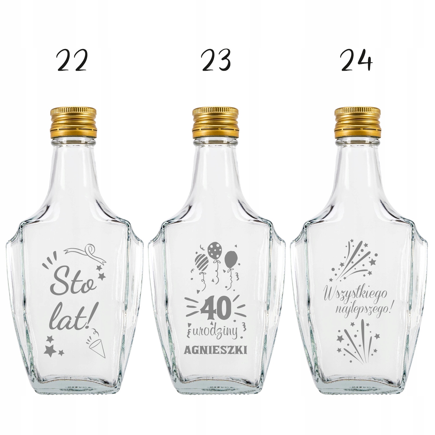 У наборі ви отримуєте 10 пляшок із гравюром та ковпачками.