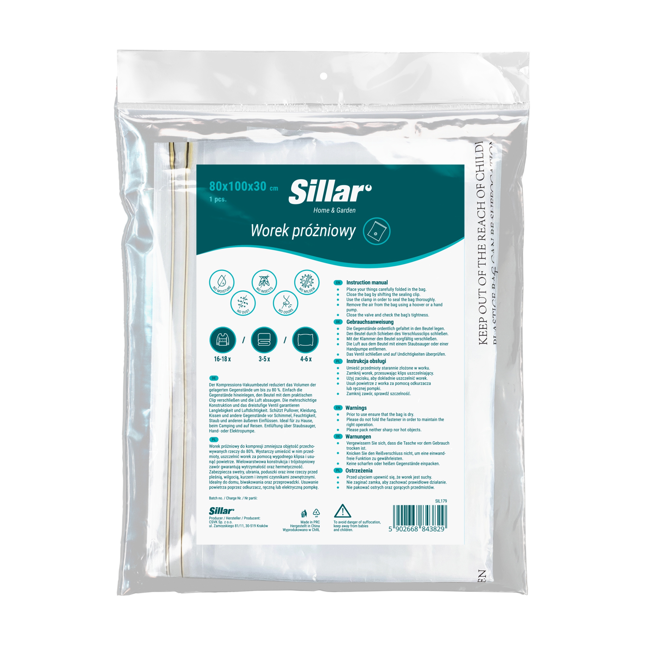 вакуумна сумка - куб компресії з розмірами 80x100x30 см , зменшує об'єм збережених предметів на 80%. Багатошарова конструкція та триступеневий клапан гарантують довговічність та герметичність. захищає светри, одяг, подушки та інші предмети проти цвілі, вологи, пилу та інших зовнішніх факторів.