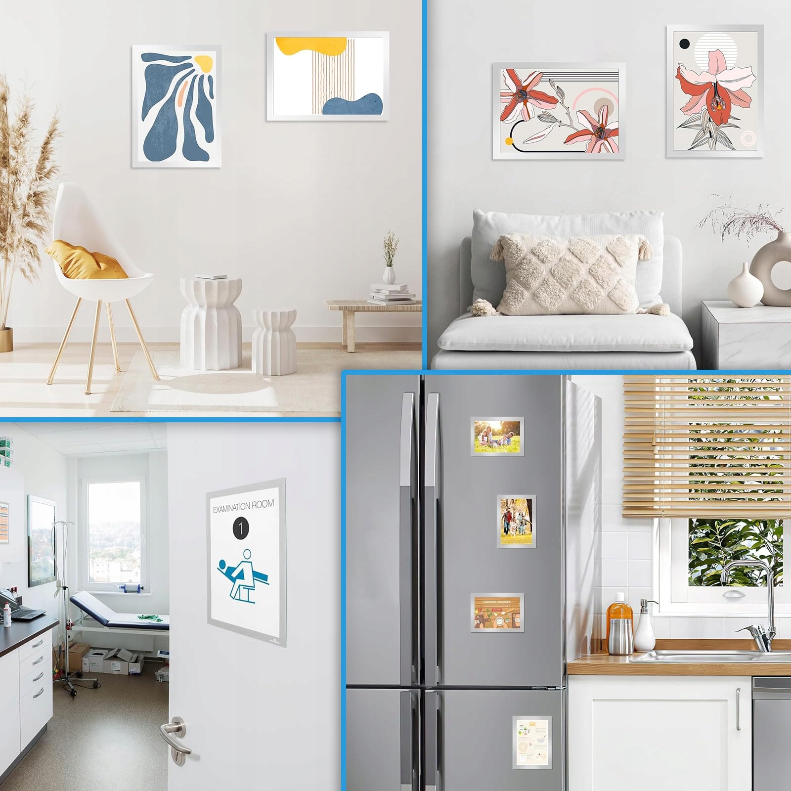 Ви отримаєте 10 магнітних фоторамок (розмір 32,5 х 23,9 см), які підходять для документів формату А4. Ці рамки, які ідеально підходять для портретної або альбомної орієнтації, дозволяють гнучко відображати фотографії, плакати, сертифікати тощо. Ідеально підходить для домашнього та ділового використання.