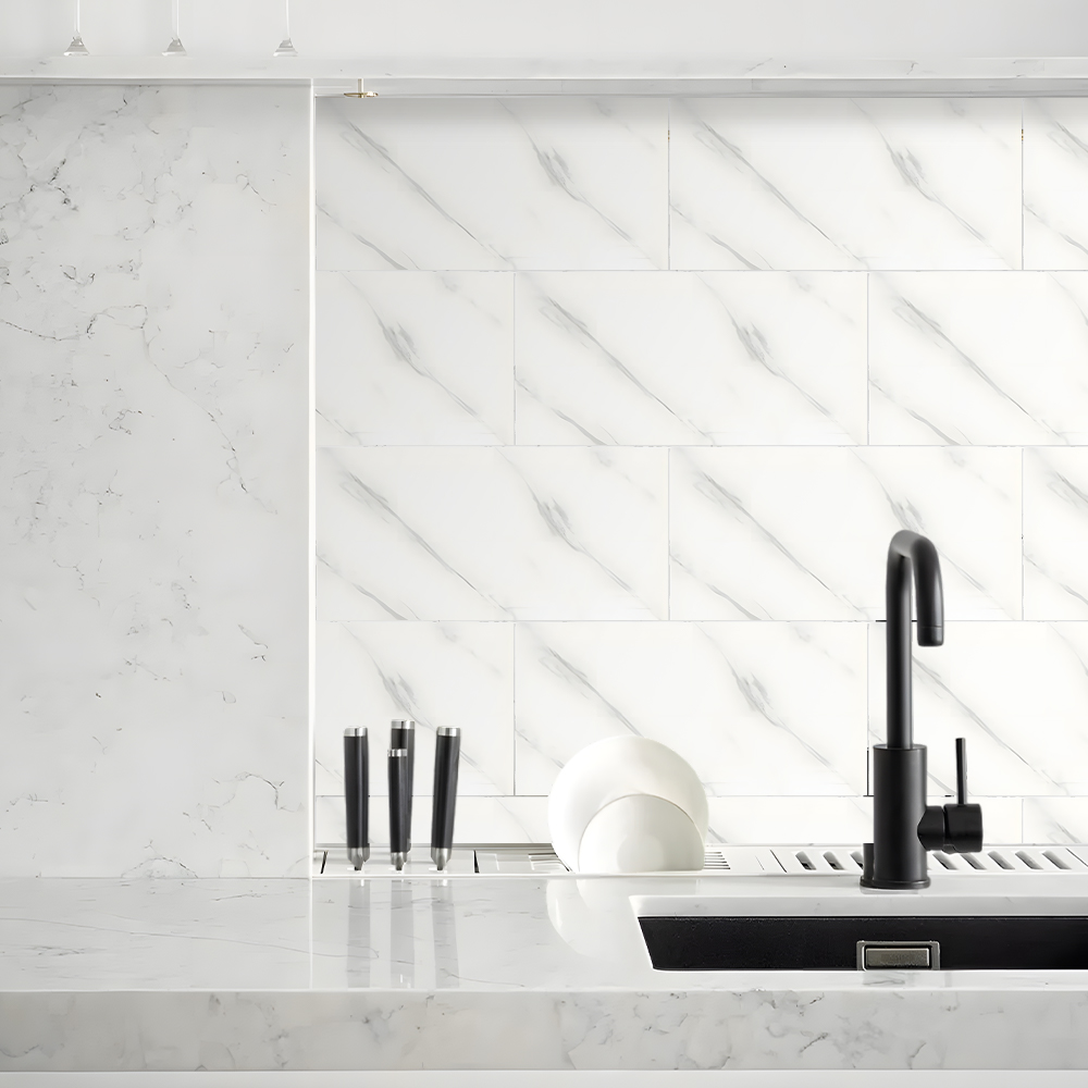 Наклейки для кухонних плиток: Тонка самостійна настінна плитка, вільно нарізана різкими ножицями або корисним ножем. Легка, ніж справжня мармурова плитка, просто очистіть і клей, без суглоба, це не потребує спеціального ножа.