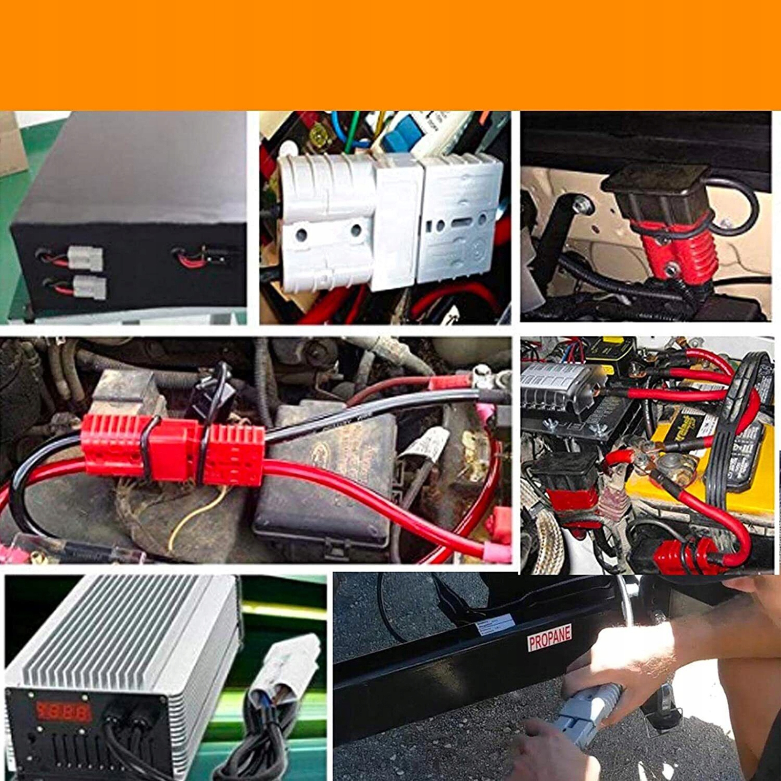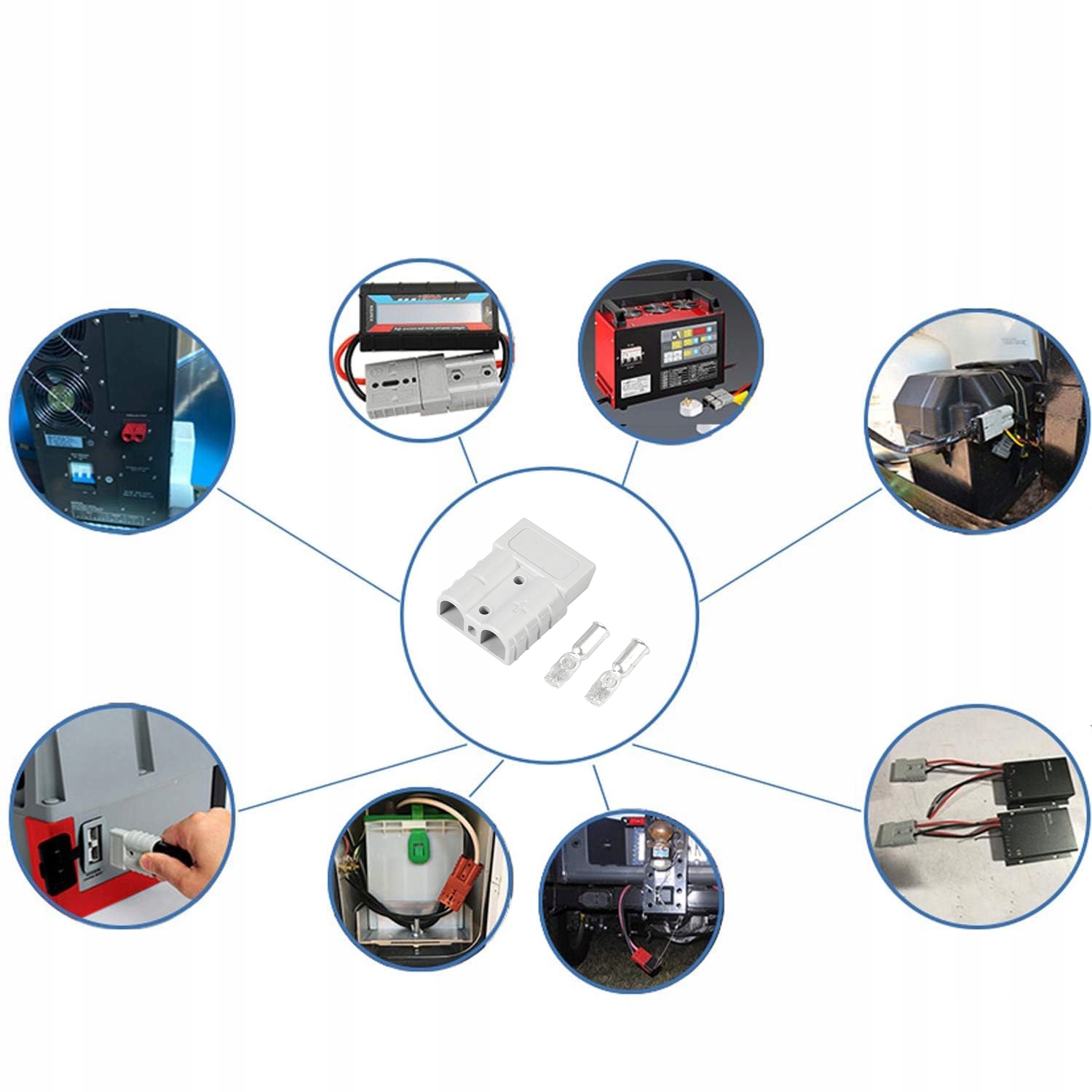 Підключення акумуляторів, навантажувачів, зарядних батарей, сонячних батарей, генераторів вітру, буксирів, снігових плуг, сільськогосподарських обладнання, кабелів запуску, зварювального обладнання, лебідки, електромобілів тощо.
