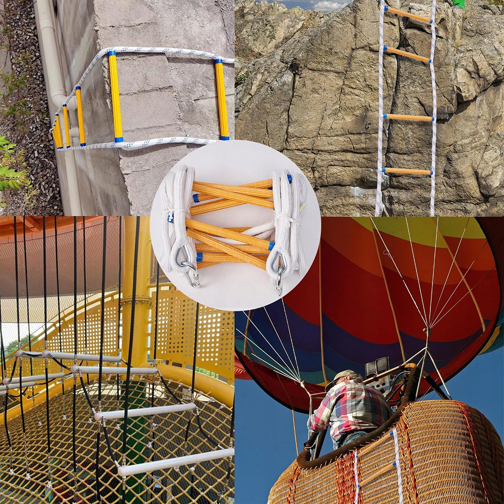 【Суцільна і міцна】- щоб забезпечити вам міцну драбину, наша евакуаційна драбина використовує лише мотузки та смоли найвищої якості, що може бути вашою підтримкою в надзвичайних ситуаціях. Завдяки міцній конструкції, вона витримує вагу понад 150 кг, що робить його незамінним вибором для кожного будинку чи офісу, який хоче зберегти безпеку.