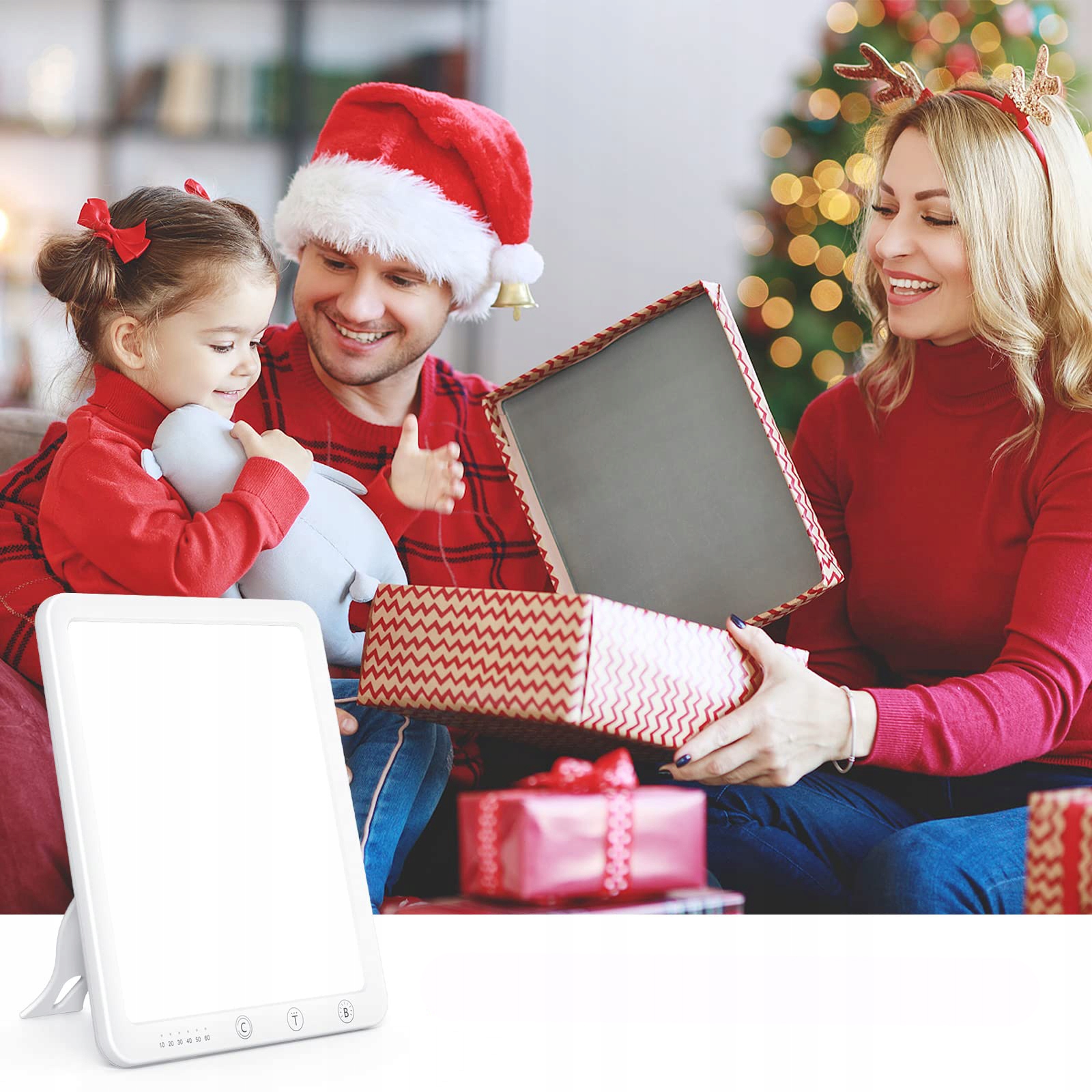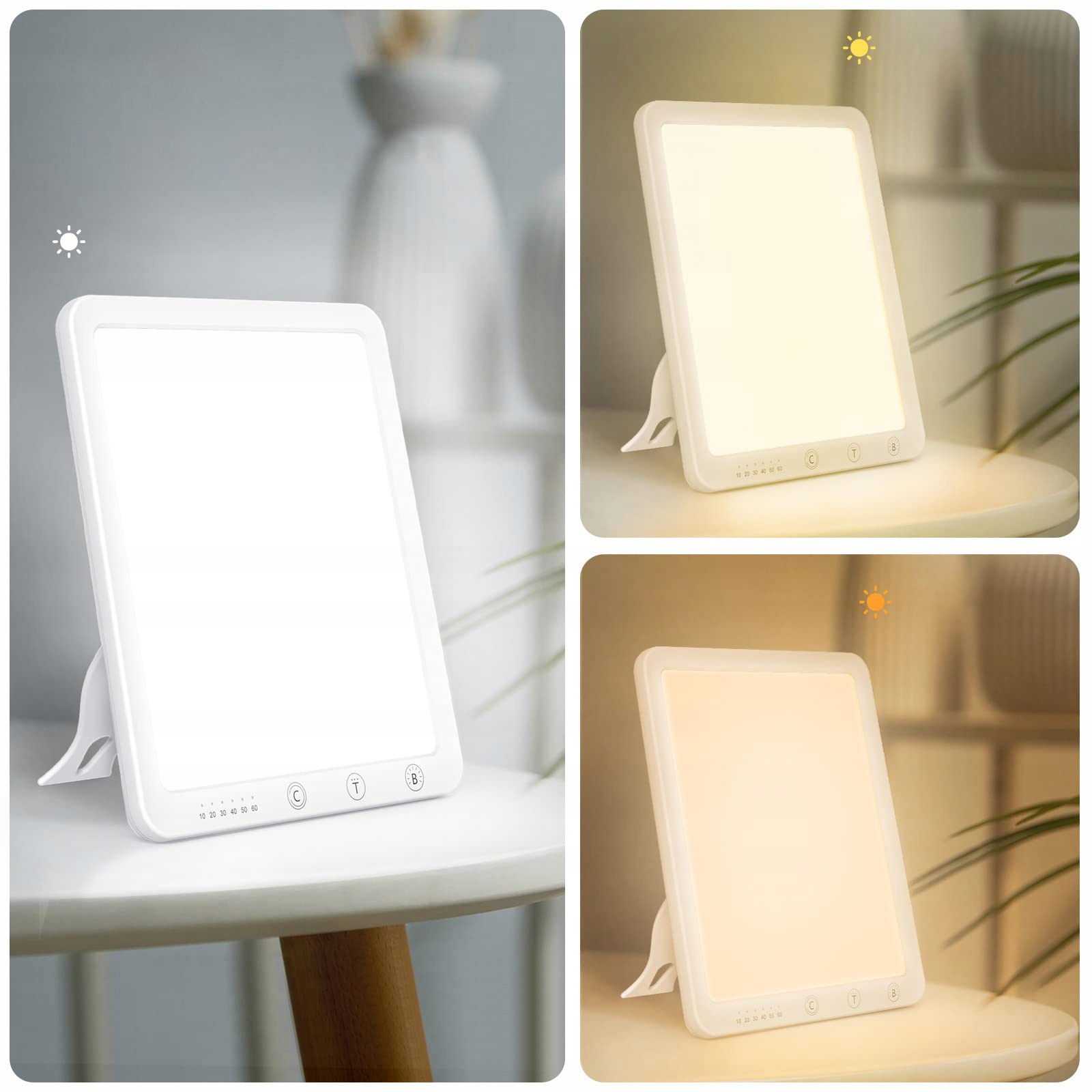 Медичний пристрій: імітуючи денне світло, ця лампа денного світла підходить для використання у випадку дефіциту світла, таких як відсутність рівноваги, зменшення настрою або відсутність енергії та мотивації, завдяки якому він ідеально працює в темну осінь та зимові дні. люкс. Наявні три рівні яскравості (білі, натуральні та теплі). Ви можете вибрати бажану яскравість. Світлодіодна технологія без мерехтіння та ультрафіолетового випромінювання