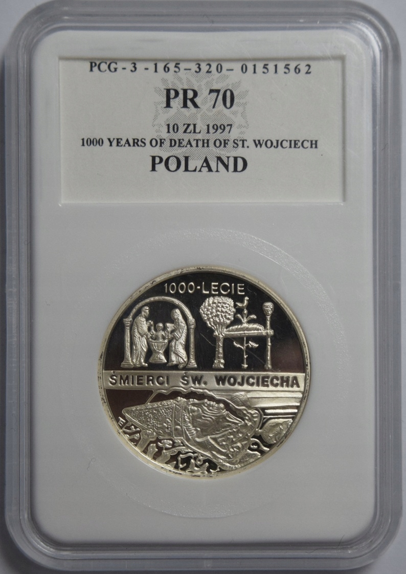 10 1000 злотих - РІЧНИЦЯ СМЕРТІ СВ. WOJCIECHA 1997 PCG PR70