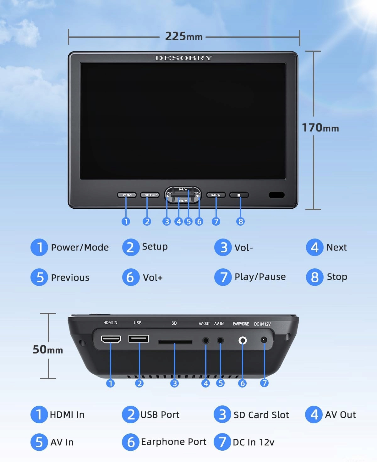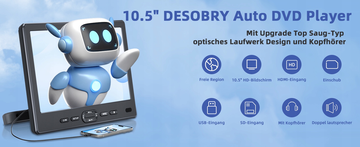 10,5" HDMI USB AV DVD-програвач із підголівником для дітей, PDV1016B