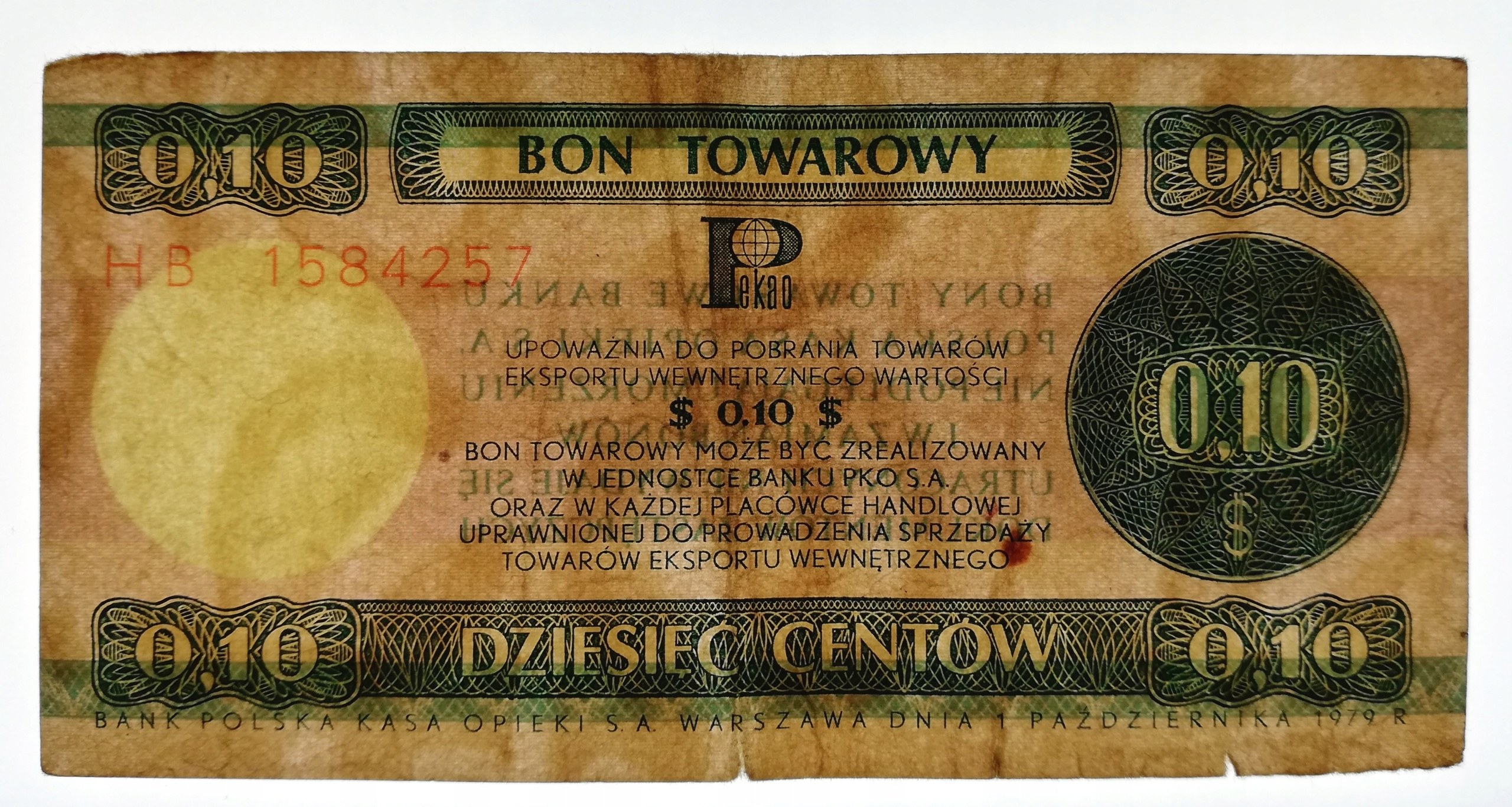 Невеликий ваучер на 10 центів 1979 року серії Pewex HB