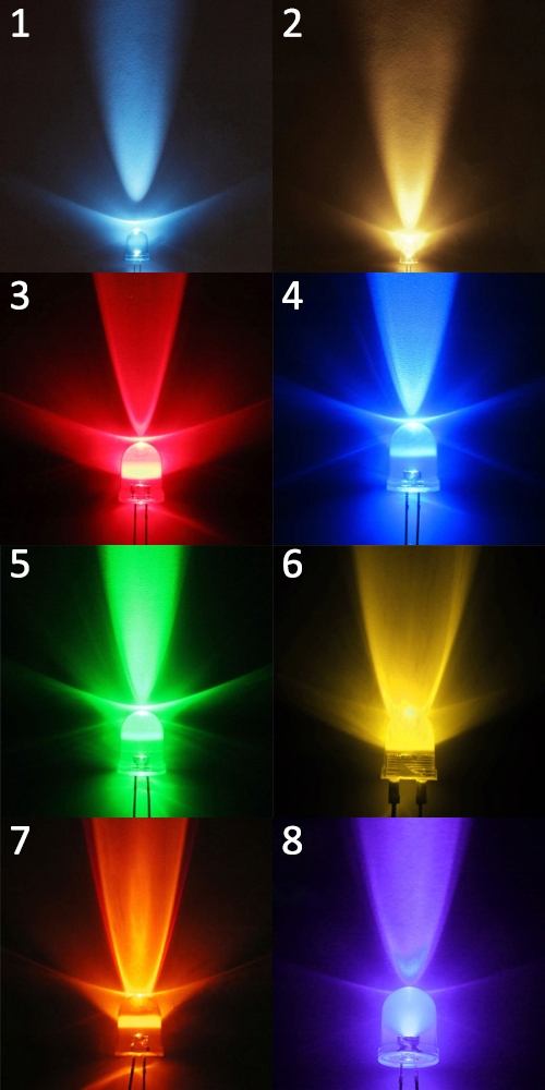 Його світло, що міститься під кутом освітлення, дуже потужне та сфокусоване, це найпотужніші світлодіоди. Вони ідеально підходять для створення ліхтариків, які потребують далекого освітлення. Цей тип діодів також часто використовується для створення сигнальних лампочок, тому що, якщо ми станемо перед світловим променем, ми будемо засліплені. Деякі з наших клієнтів використовують цей тип діода для створення банерів і реклами, особливо тих, які розташовані подалі від потенційного глядача