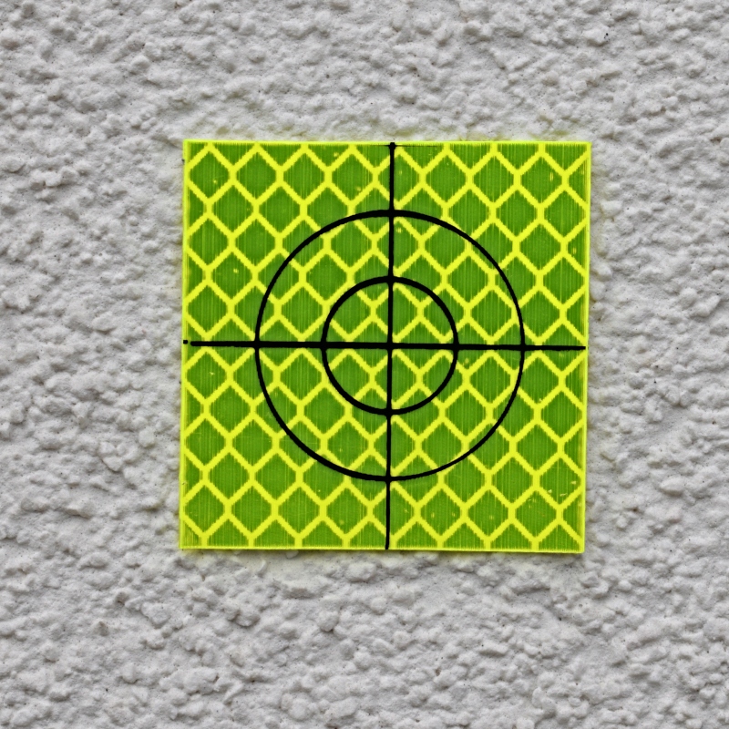 Висококласна самоклеюча далекомірна фольга для вимірювання відстаней за допомогою тахеометрів. Фольга 3 покоління, тому краще відбиває світло. Чітко видимий чорний хрест на жовтій світловідбиваючій плівкі полегшує визначення місцезнаходження та наведення в центр.
