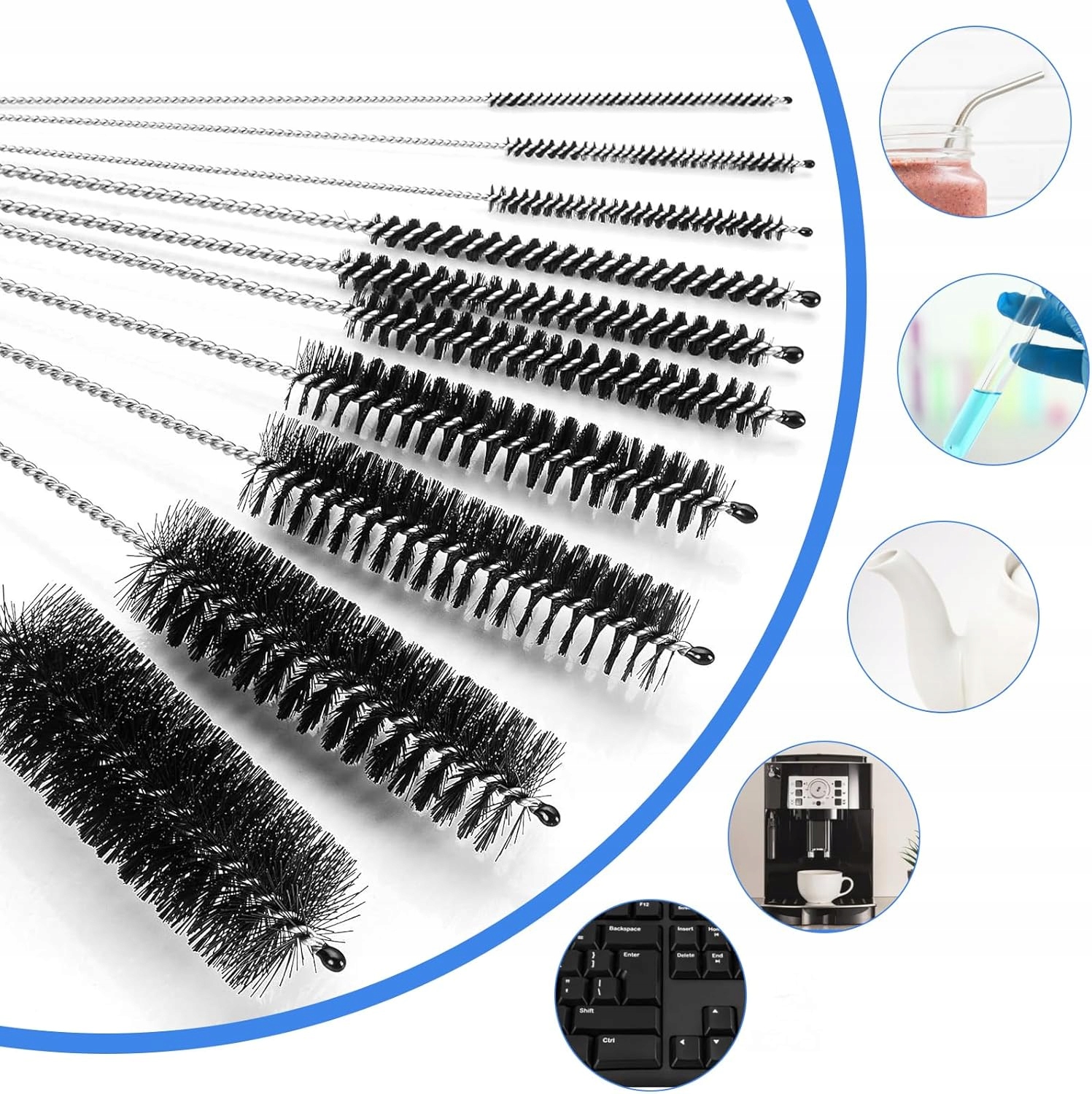 10 довгих щіток для чищення пляшок, трубочок і еспресо-машин різної товщини