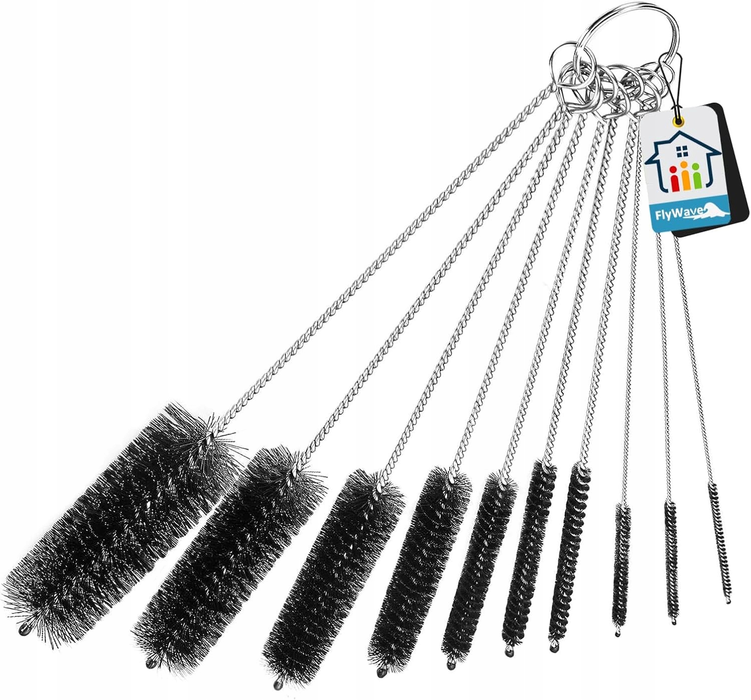 Набір із 10 довгих щіток, розроблених для ефективного чищення пляшок, соломинок і кавомашин. Щітки різної товщини, що дозволяє точно досягати важкодоступних місць.
