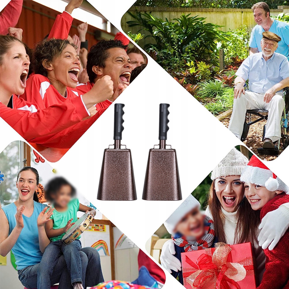 4. 【Ергономічний і міцний】: Інструмент Cowbell виготовлений із міцної залізної конструкції та має ергономічну ручку для зручного захоплення. Завдяки цьому їх легко тримати та трясти протягом тривалого періоду часу, гарантуючи, що вони витримають хвилювання будь-якої події.