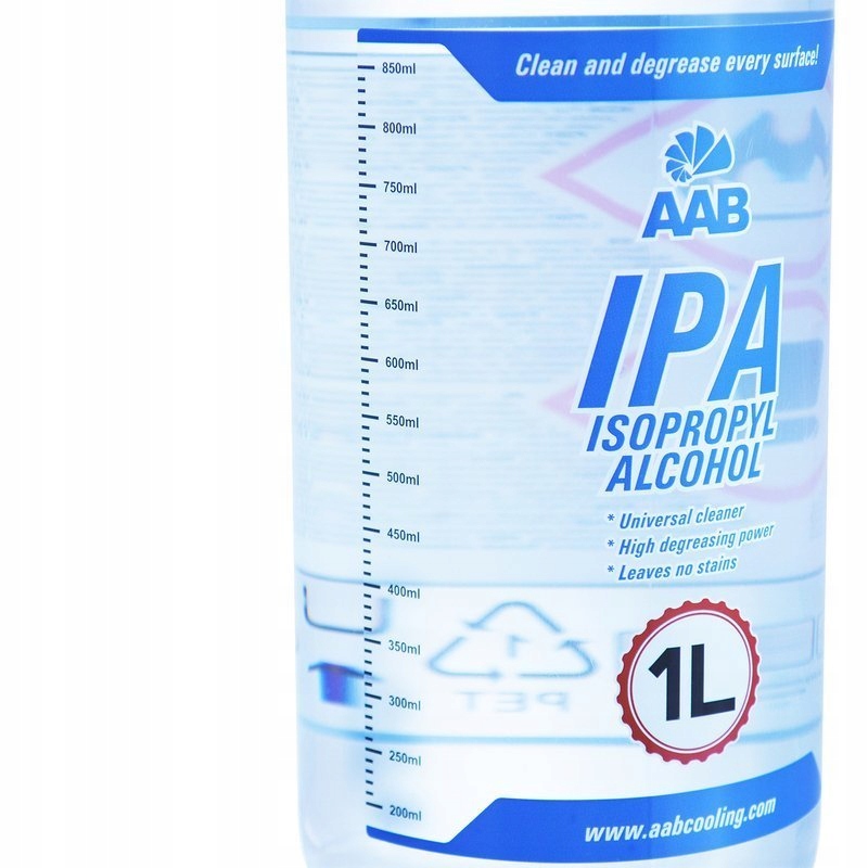 AABCOOLING IPA 1L є дуже ефективним препаратом, 99,7% чистого спирту під назвою ізопропанол. Високоякісний ізопропіловий спирт - це продукт від AAB для видалення жирних забруднень, таких як жир, масло, водостійкі чорнила, залишки старих клеїв або термопаст. Цей універсальний препарат очистить усі стійкі забруднення, від яких важко позбутися, не пошкодивши обладнання чи поверхню, на якій воно використовується. Він швидко випаровується з очищених поверхонь і не залишає слідів/насінин. Продукт повністю хімічно нейтральний до матеріалів, що використовуються в електроніці та електротехніці.