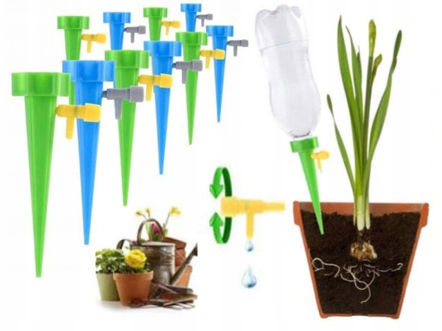 - Щоб використовувати іригатор, просто прикрутіть стандартну пляшку, наповнену водою, вставте шпильку у землю та відкрийте кран і виберіть відповідну кількість крапель для поливу.