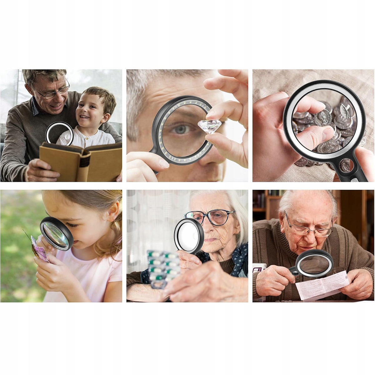 Чудове велике збільшувальне скло, адаптоване до потреб людей похилого віку та дітей. Багатьом людям похилого віку важко читати дрібний шрифт, рецепти та пляшечки з ліками. Ця лупа з підсвічуванням також є ідеальним вибором для людей з різними порушеннями або втратою зору.