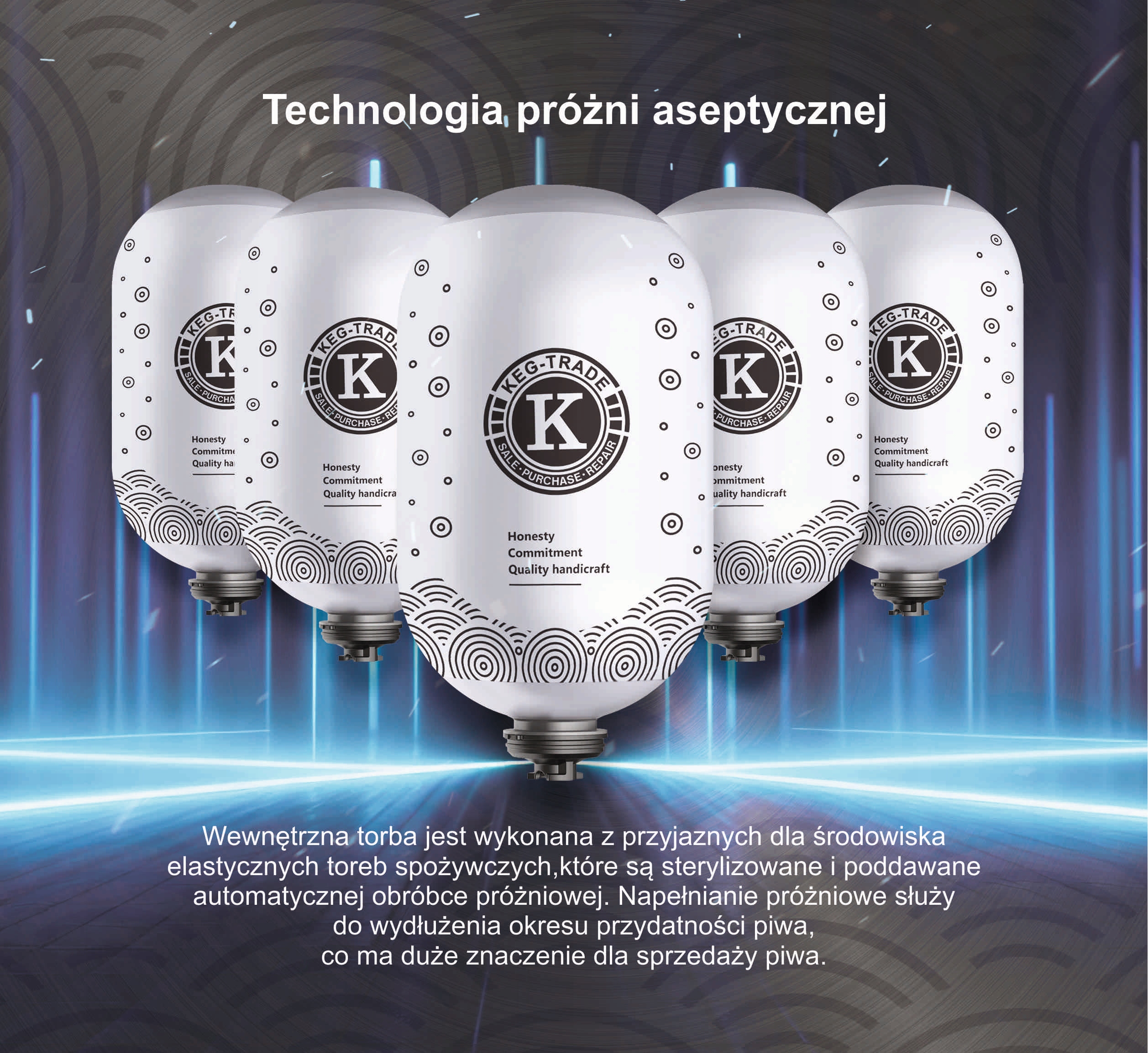 На відміну від традиційних сталевих бочок для домашніх тварин, вони характеризуються тривалим можливим періодом зберігання продуктів, без втрат, немає необхідності повертати бочки або необхідність використання резервуару з вуглецевим газом. Крім того, вони легкі, вони не потребують великого транспорту, без необхідності керувати зберіганням та продавати їх. Їх можна замовити відповідно до попиту на різні потужності - вам не доведеться турбуватися, що бочки будуть недостатніми на піку сезону, а запаси занадто великі поза ним. Це також відсутність обмежень, пов'язаних з регіоном, та середовищем використання кінцевого пристрою (як онлайн, так і офлайн -канали). Революційний продукт у сфері пивного сектору, що дозволяє запустити продукт на національний ринок.