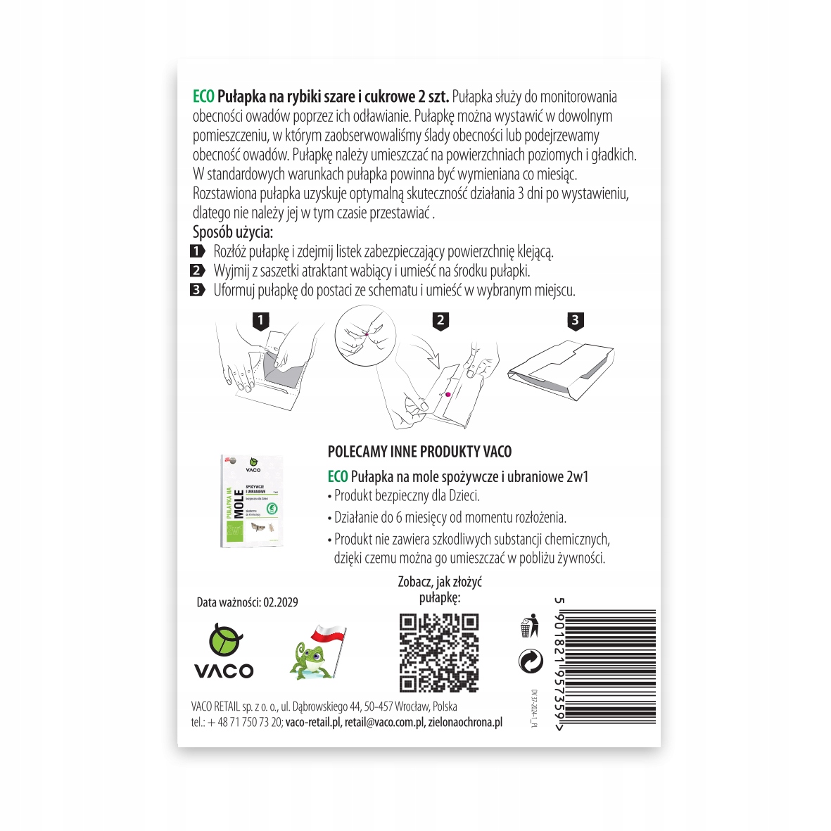 Пастки для сірої та цукрової сріблястої риби VACO є надійним інструментом у боротьбі з товстолобикою - комахами, які часто гніздяться у вологих і темних місцях, таких як ванні кімнати, кухні, комори або підвали. Пастки оснащені міцним клеєм, який ефективно знерухомлює комах, не даючи їм рухатися далі.