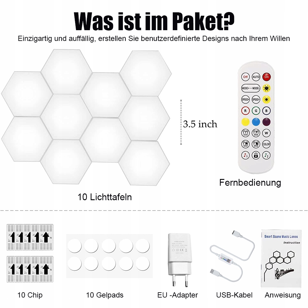 【Веселка настінне світло HD】 вдосконалений шестигранний шестикутник Bluetooth з вбудованою імпортною інтелектуальною мікросхемою, оснащеною 16 -ти бісерами лампи RGBIC, може бути чудовим перемикачем світла. Світла панель може з’являтися в різних кольорах, щоб отримати плавний ефект плавного світла порівняно зі звичайними 6 -RGB світлодіодами, як якість зображення HD порівняно зі заблокованим PPT. настінна лампа. Максимальна ширина кожної панелі - 98 мм. 3,86 дюйма, легка панель щільно збігається, темна сторона в основному невидима менше ніж 1%.