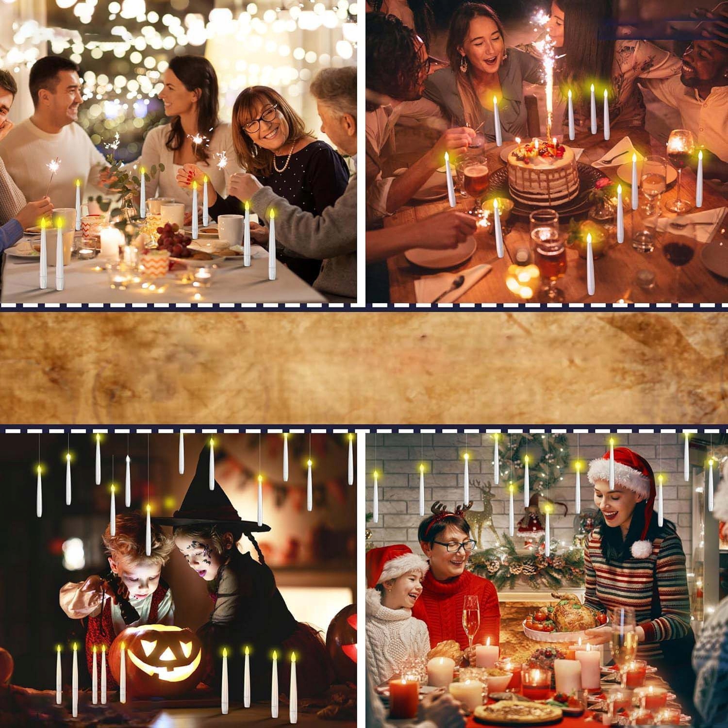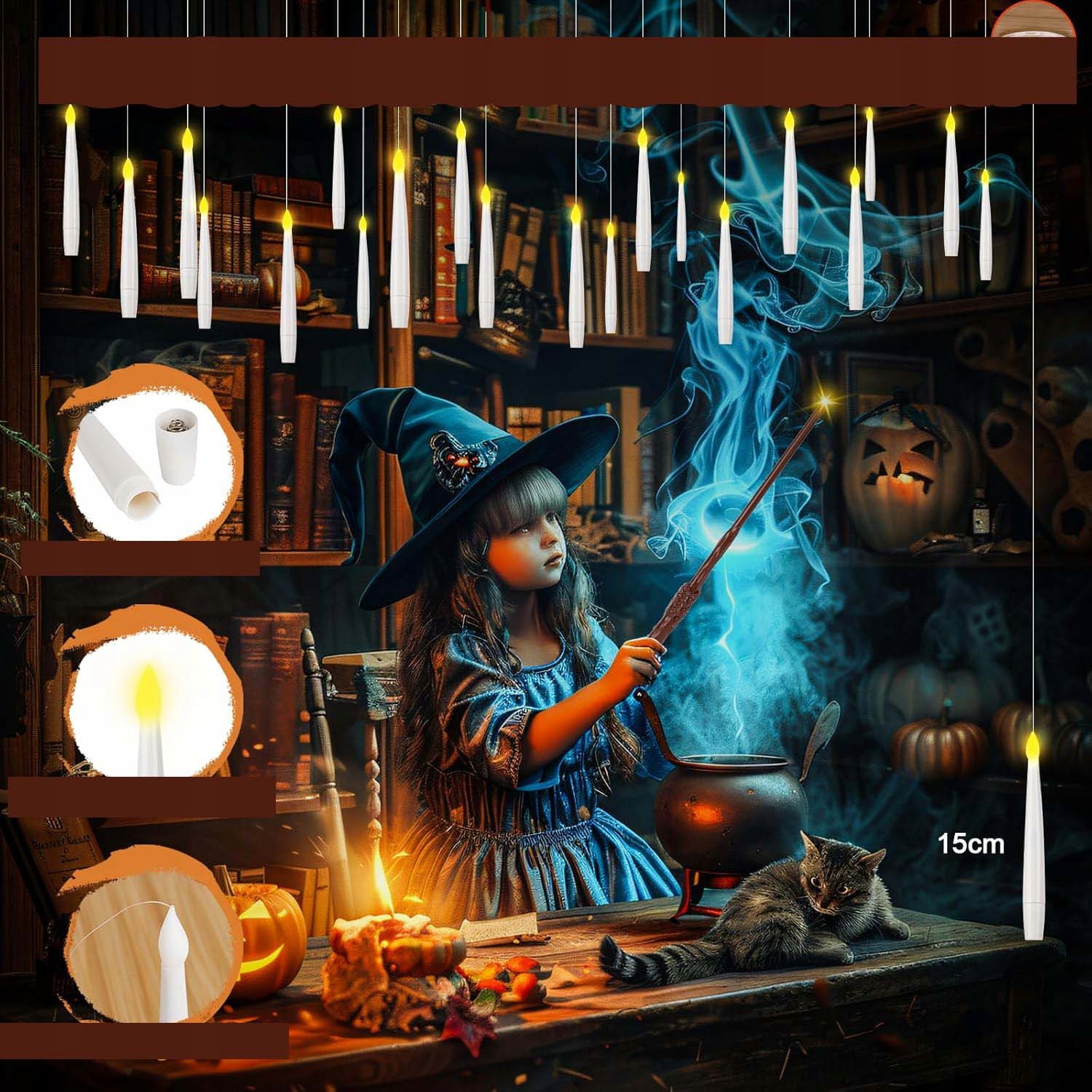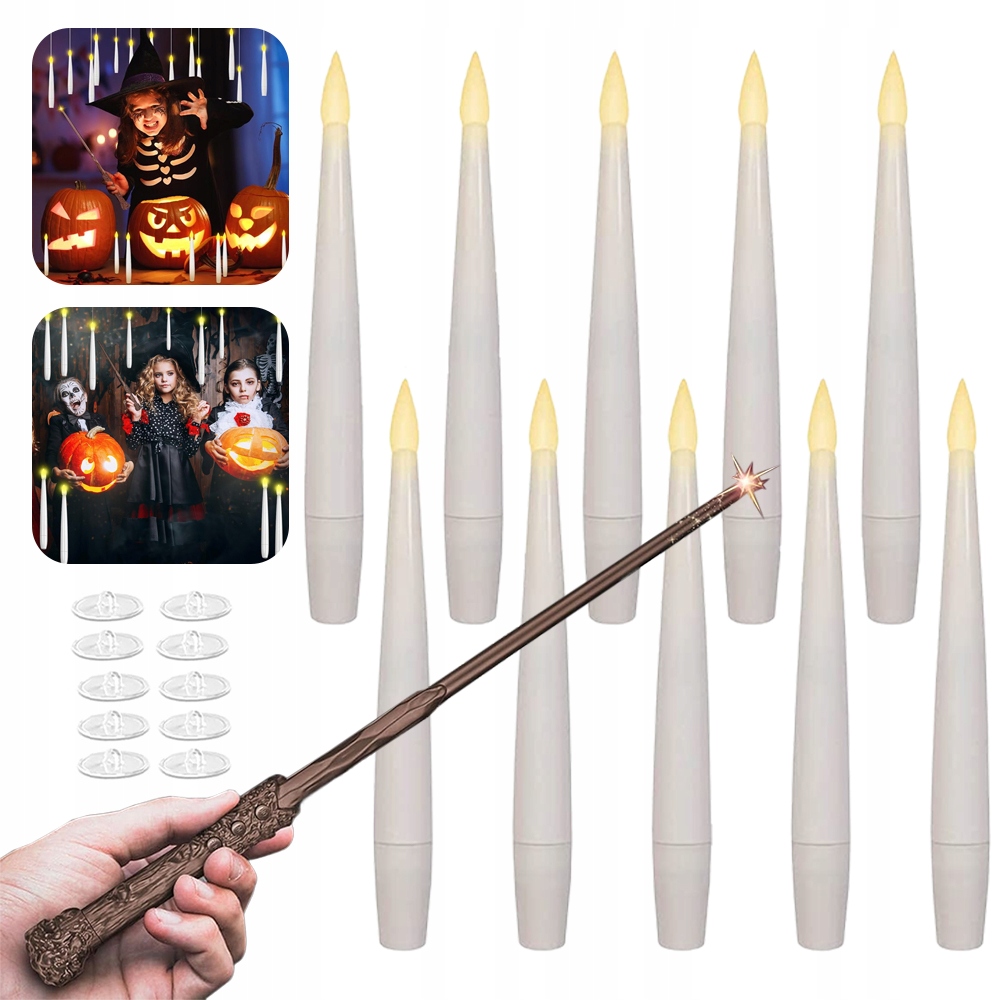 🎨🎨【Ідеальний подарунок】Ці реалістичні безполум’яні конічні свічки імітують м’яке світіння традиційних свічок, створюючи чарівну атмосферу. Помилуйтеся захоплюючими пейзажами або практикуйте магію, як чарівник, який махає чарівною паличкою. Плаваючі конічні свічки з паличками ідеально підходять для Хеллоуїна, днів народжень, весіль, камінної полиці та святкових прикрас.