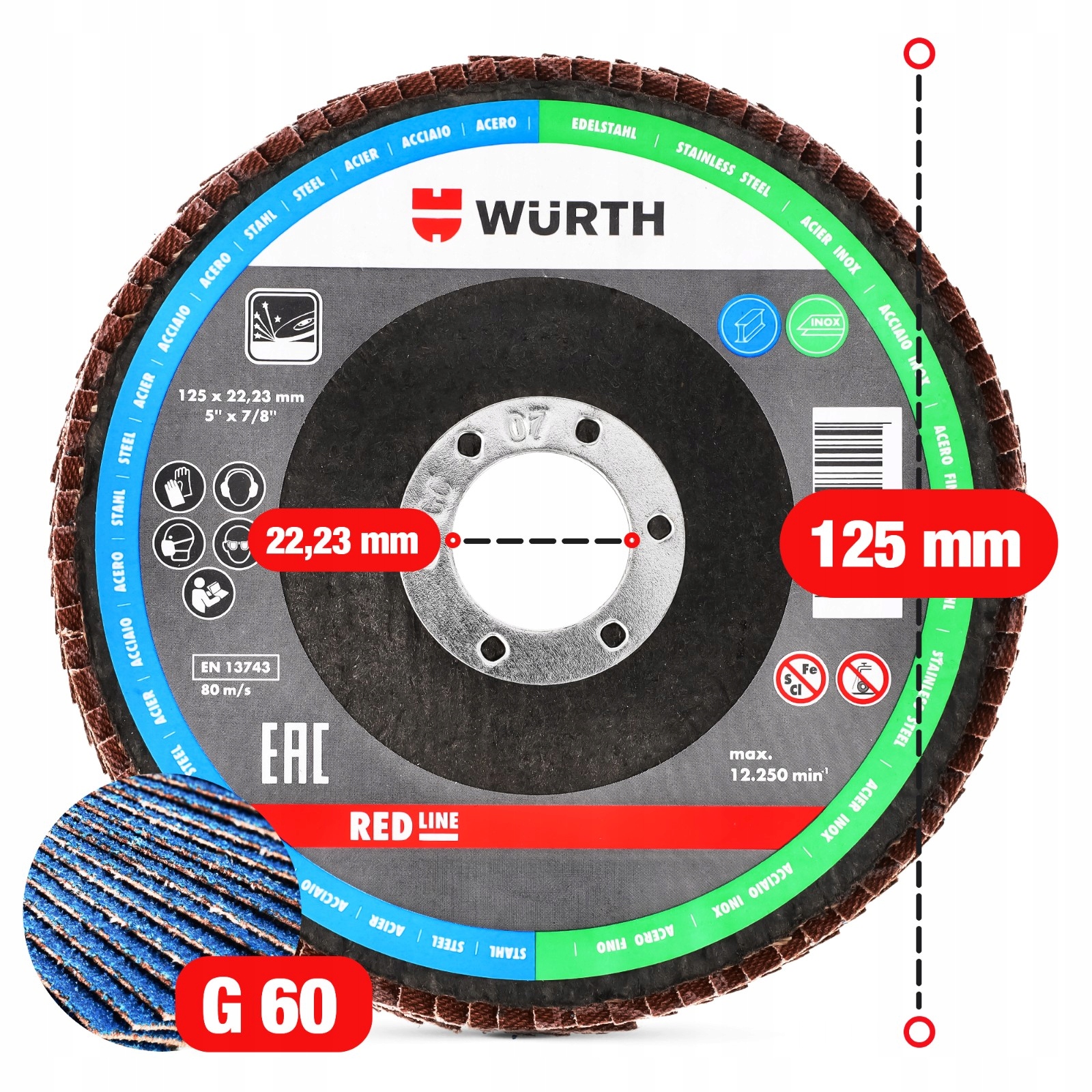 10 пластинчастих дисків RED LINE 125 мм x 22,23 мм G60 WÜRTH