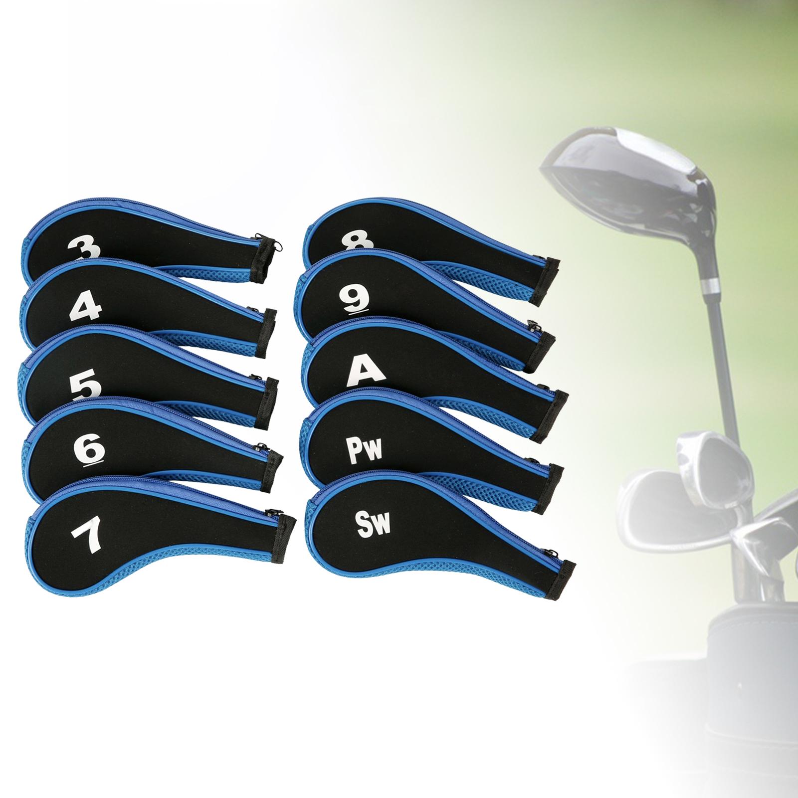 10pcs Golf Iron Headcover набір голови гольф -клубу для голови для гольф -клубу для спортивного синього та чорного краю на свіжому повітрі